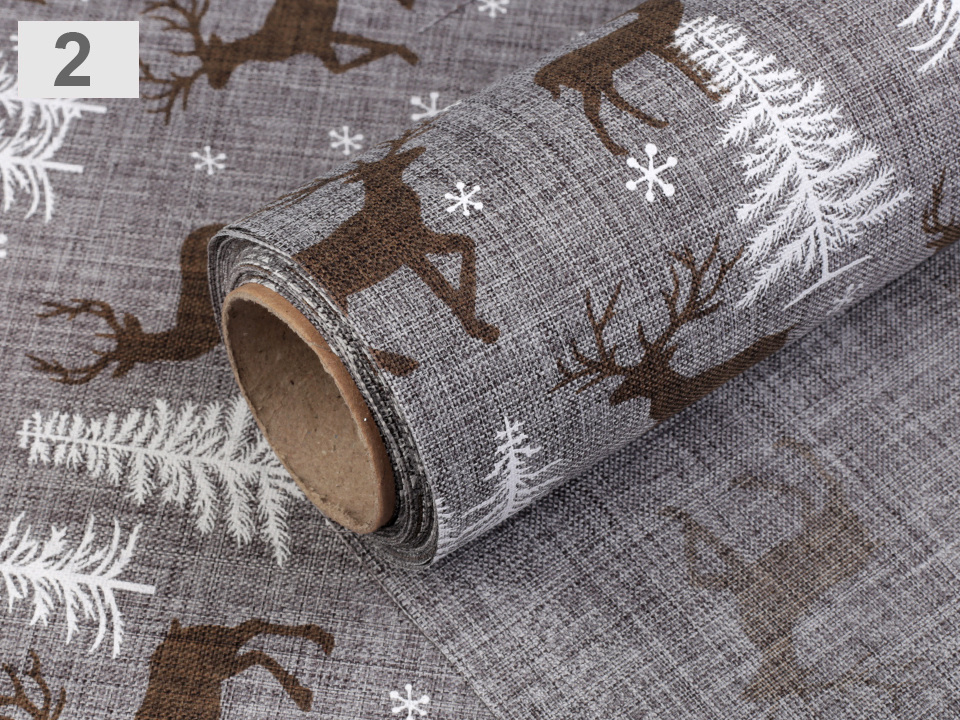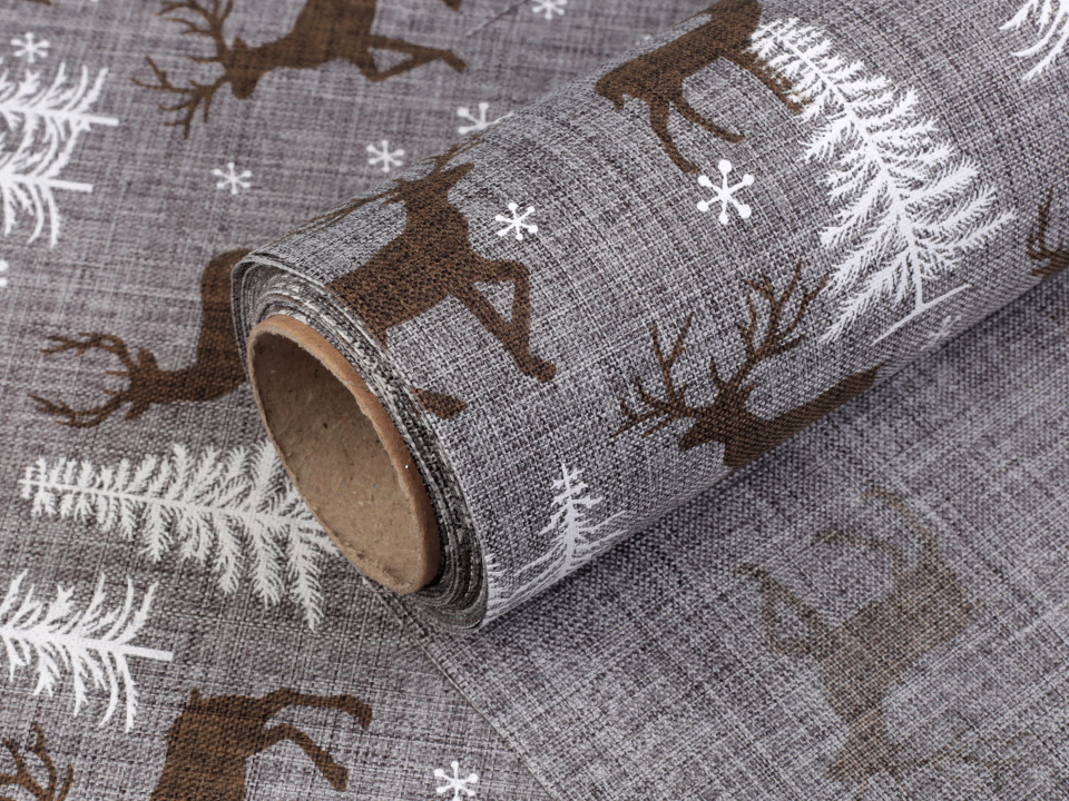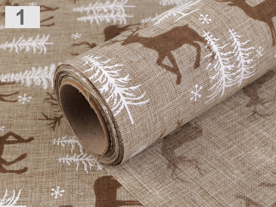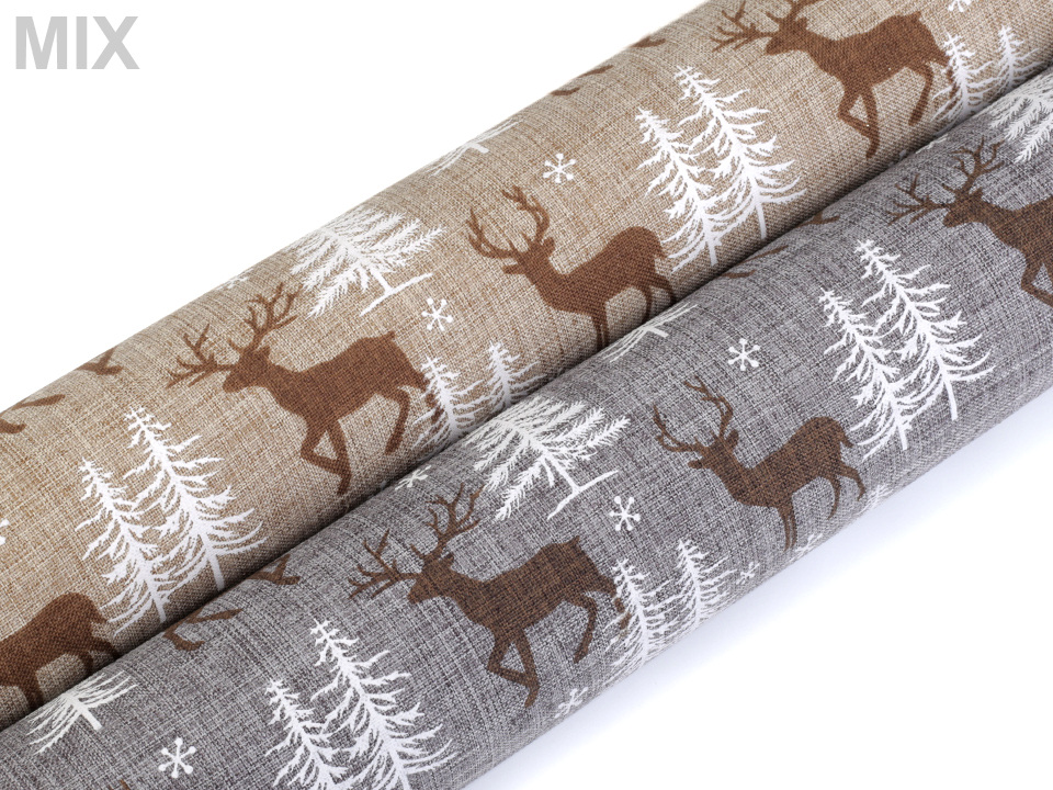 Dekorační metráž zdobí oblíbený motiv s jeleny. Vynikne převážně v zimním období.