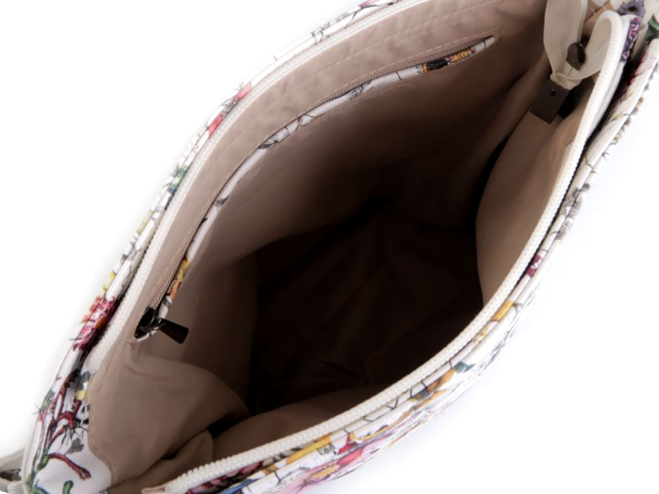 Kabelka Le Sands se zajímavým květinovým designem vás především zaujme kvalitním zpracováním. Zapíná se na zip. Uvnitř hlavní kapsy je jedna menší postranní kapsa na zip a dvě přihrádky. Další kapsu na zip najdete na vnější zadní straně kabelky.