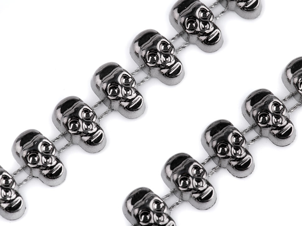 Plastový prýmek zdobí detailně zpracované lebky. Můžete ho stříhat na různou délku i na jednotlivé dílky.
