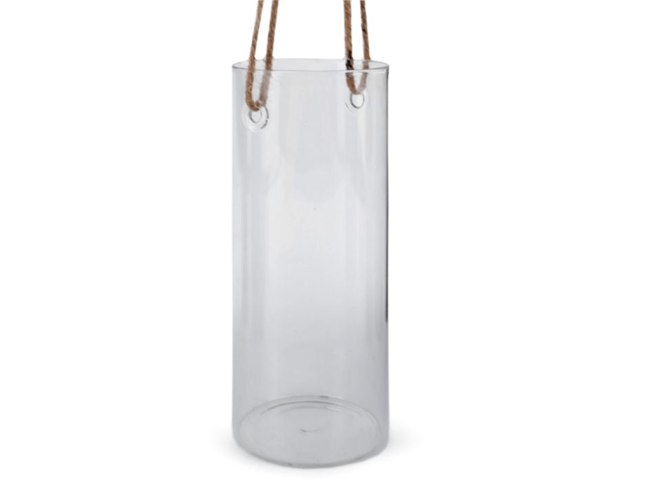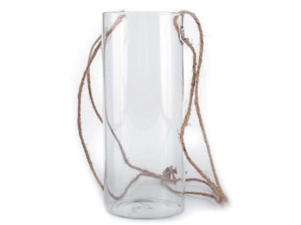 Skleněný válec svým nevšedním designem oživí každý interiér i exteriér. Díky jutovému provázku se dá zavěsit na trám nebo háček na stěně. Dovnitř můžete naaranžovat sukulenty a jiné rostlinky, písek, kamínky apod.