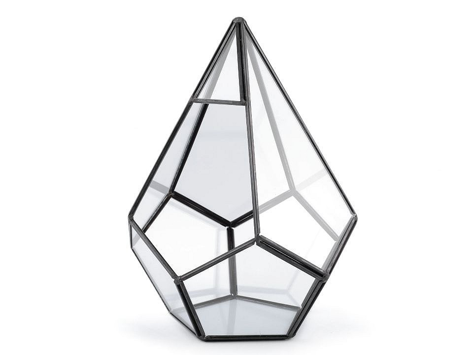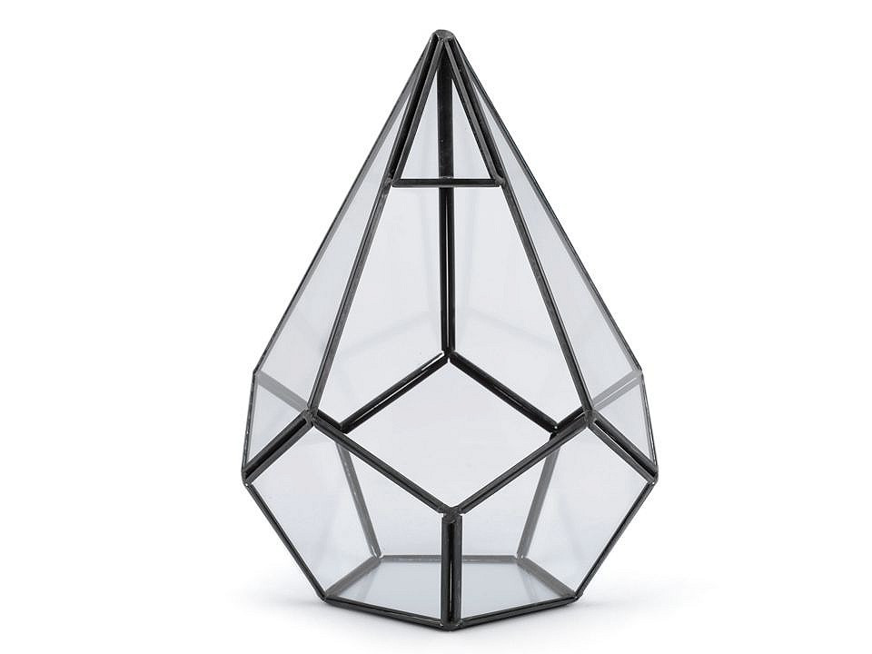 Skleněné florárium ve tvaru jehlanu oceníte jako stylový interiérový doplněk. Uvnitř se bude skvěle dařit rostlinám menšího vzrůstu, například sukulentům nebo masožravkám. Mimo ně do něj můžete naaranžovat také písek, kameny, či květy.