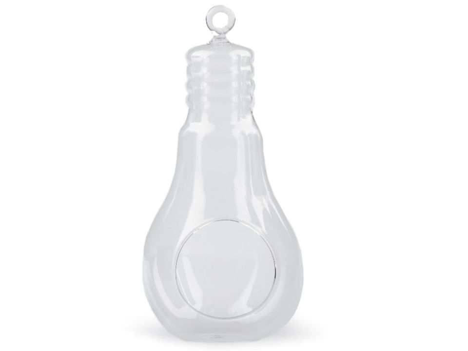 Skleněné aerárium je originální svým designem ve tvaru žárovky. V horní části má očko, do kterého můžete provléknout provázek a aerárium tak pověsit na trám nebo na háček na stěně. Díky plochému dnu má také dobrou stabilitu. Dovnitř můžete naaranžovat sukulenty a jiné rostlinky, písek, kamínky apod.