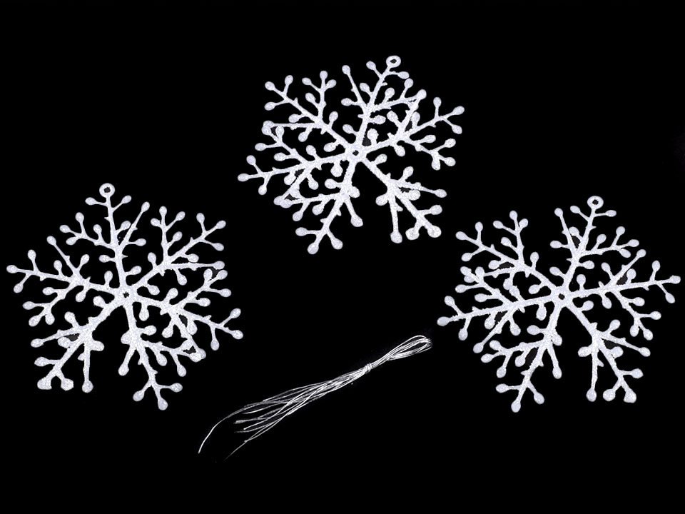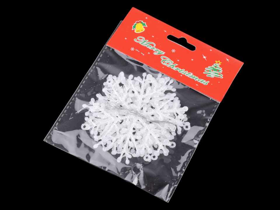 Dekorační vločka působí na první pohled křehce. Je lehká a celá zahalená třpytivými glitry. Má u sebe lurexový provázek, za který ji můžete pověsit na stromeček, do oken nebo na věnec.