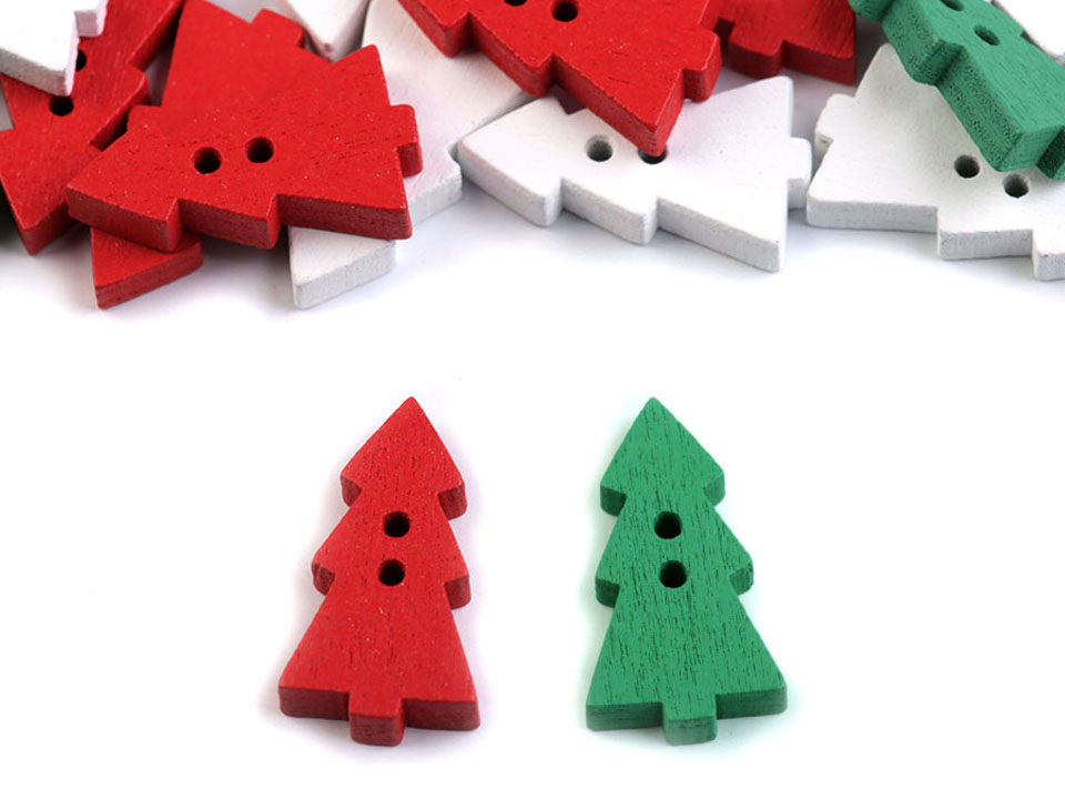 Dřevěné dekorační knoflíky ve tvaru stromečku vás jednoduše vtáhnou do vánoční nálady. Využijete je hlavně ve scrapbookingu na ozdobení rámečků, přáníček, jmenovek, pozvánek či deníků. Lze je použít na vánoční dekorování.