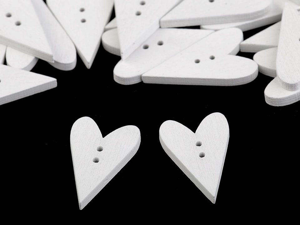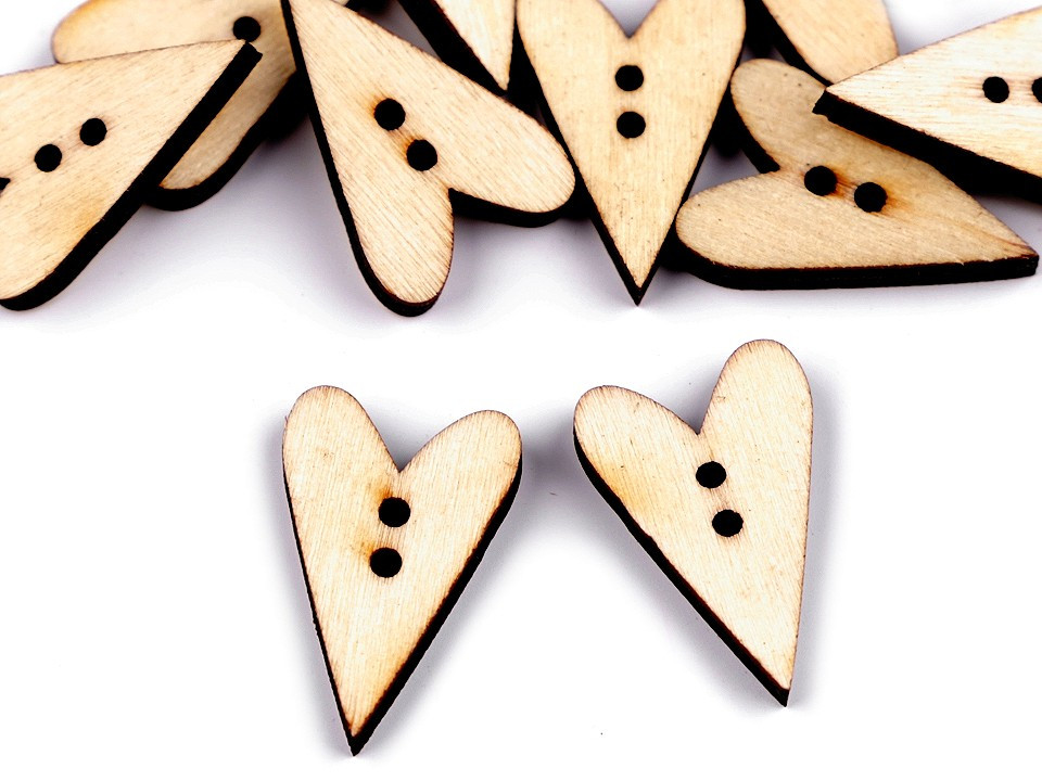 Dřevěné dekorační knoflíky ve tvaru srdce mají široké využití. Nejčastěji se s nimi můžete setkat ve scrapbookingu při zdobení rámečků, přáníček, jmenovek, pozvánek, deníků apod. Dále je můžete použít i na valentýnské a svatební dekorování.
