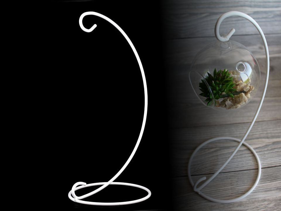 Kovový stojan s jednoduchým, ale působivým designem využijete na zavěšení skleněných aerárií nebo baněk. Má dobrou stabilitu.