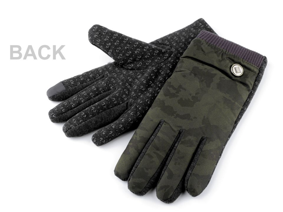 Pánské maskáčové rukavice do nepříznivého, chladnějšího počasí. Horní díl je z eko kůže, spodní je z pružného úpletu s praktickou protiskluzovou úpravou. Nerezová termoska a jiné hladké předměty vám nebudou klouzat z ruky. Ukazováčkem můžete ovládat dotykové přístroje - mobilní telefony, tablety apod. Uvnitř mají jemný plyš, jenž je velice příjemný na dotek.