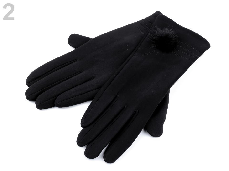 Rukavice č.2 jsou ozdobené bambulkou z pravé kožešiny a ozdobným štepováním. Bambulka má průměr 3,5 cm.