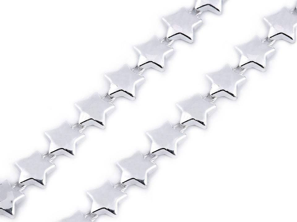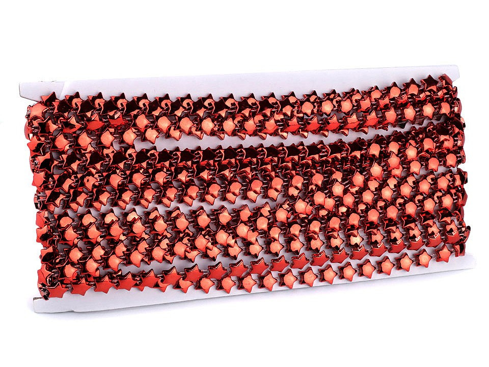 Plastový prýmek s hvězdičkami je vhodný na zdobení oděvů či obuvi, ale také na aranžování slavnostní tabule, dárků, věnců apod. Hvězdičky můžete nastříhat i samostatně.