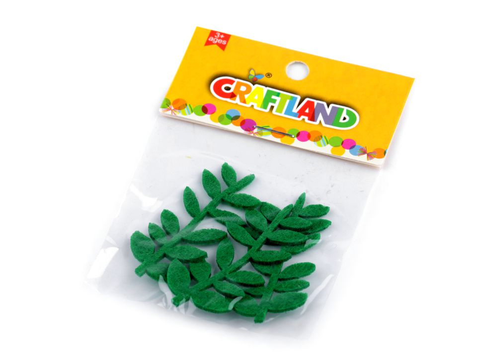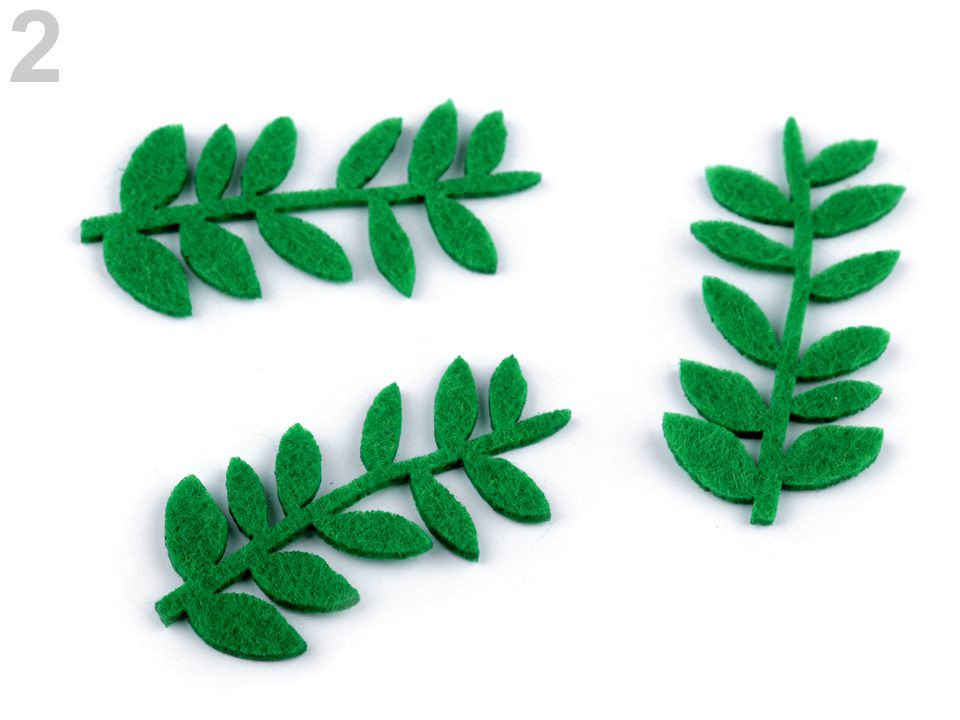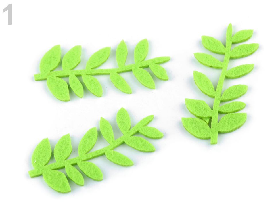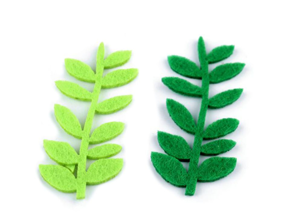 Větvička z filcu / plsti se hodí k přišití i nalepení. Její přírodní motiv využijete v mnoha výtvarných technikách.