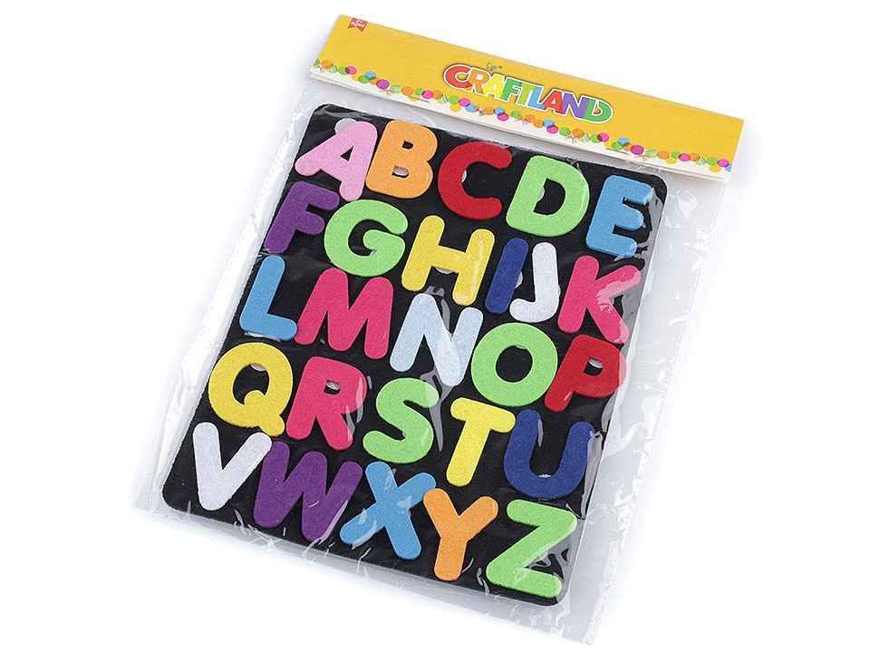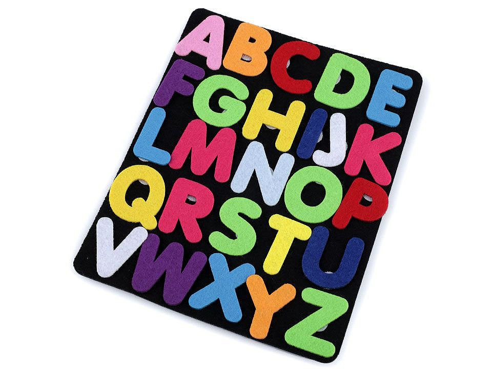 Na tabulce č.2 s abecedou se děti učí poznávat jednotlivá písmenka. Mohou i složit jednoduchá slova typu pes, auto apod. Mohou si procvičovat i barvy. Písmena mají z dolní strany suchý zip, snadno se umístí na filcovou podložku. Výška písmen je 4,5 cm.