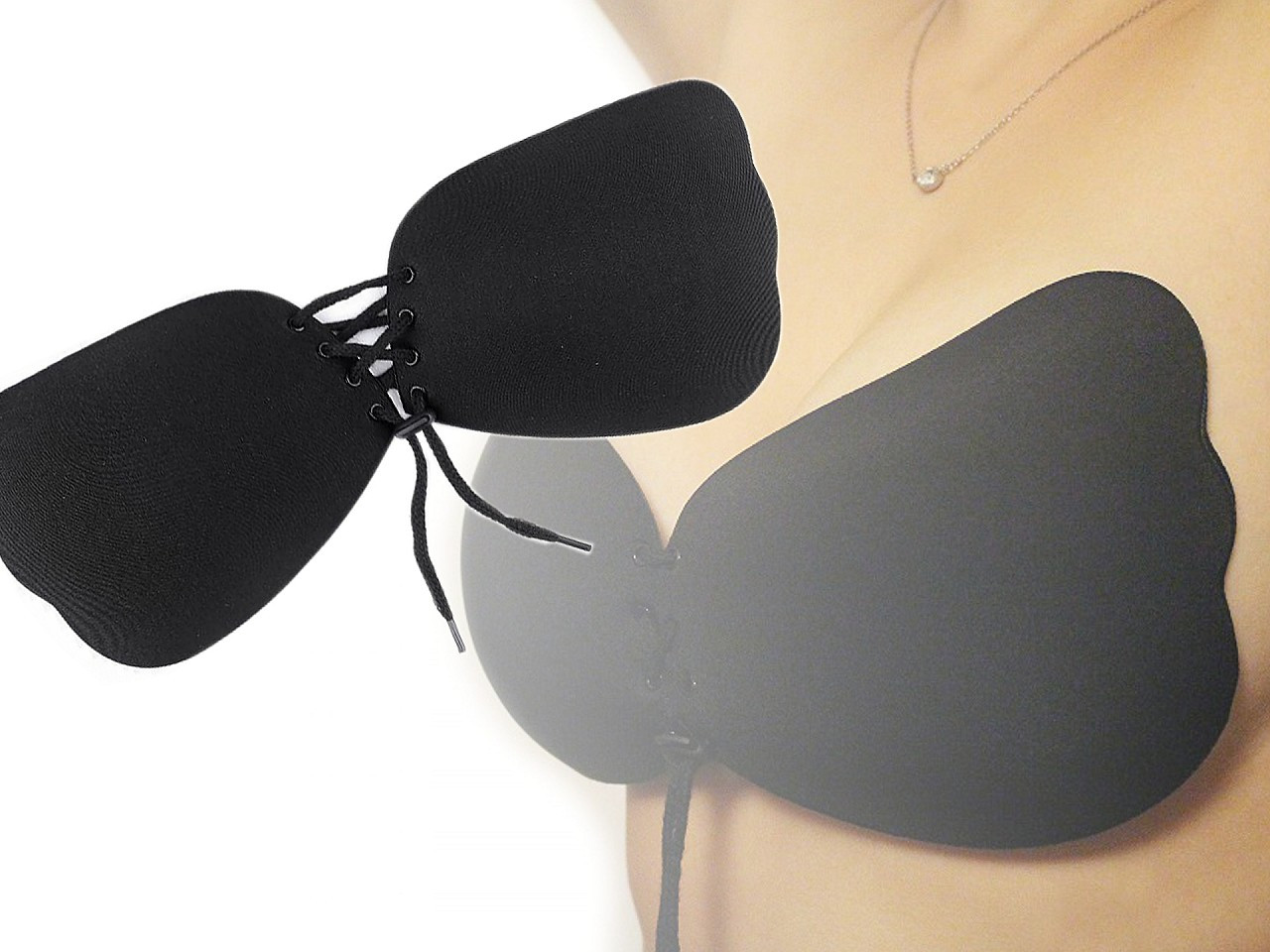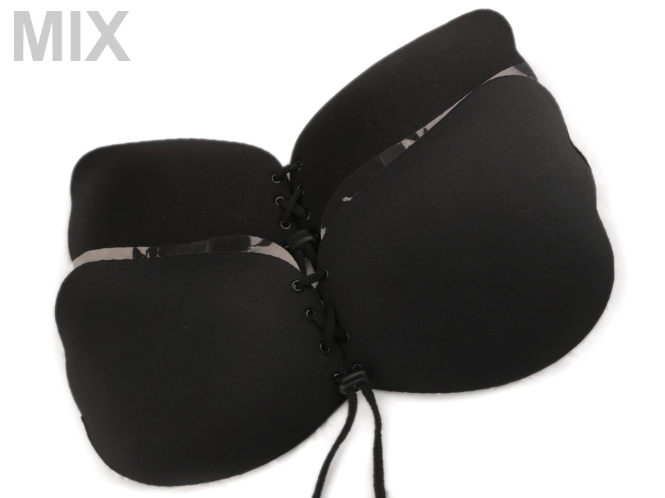 Samodržící push up podprsenka je textilní s ozdobným šněrováním. Vnitřní část má potaženou speciálním silikonem, díky kterému na ňadrech dobře přilne. Zajistí vám větší výstřih a plnější prsa. Podprsenku využijete pod společenské i letní šaty, halenky a topy s velkými a hlubokými výstřihy i otevřenými zády.