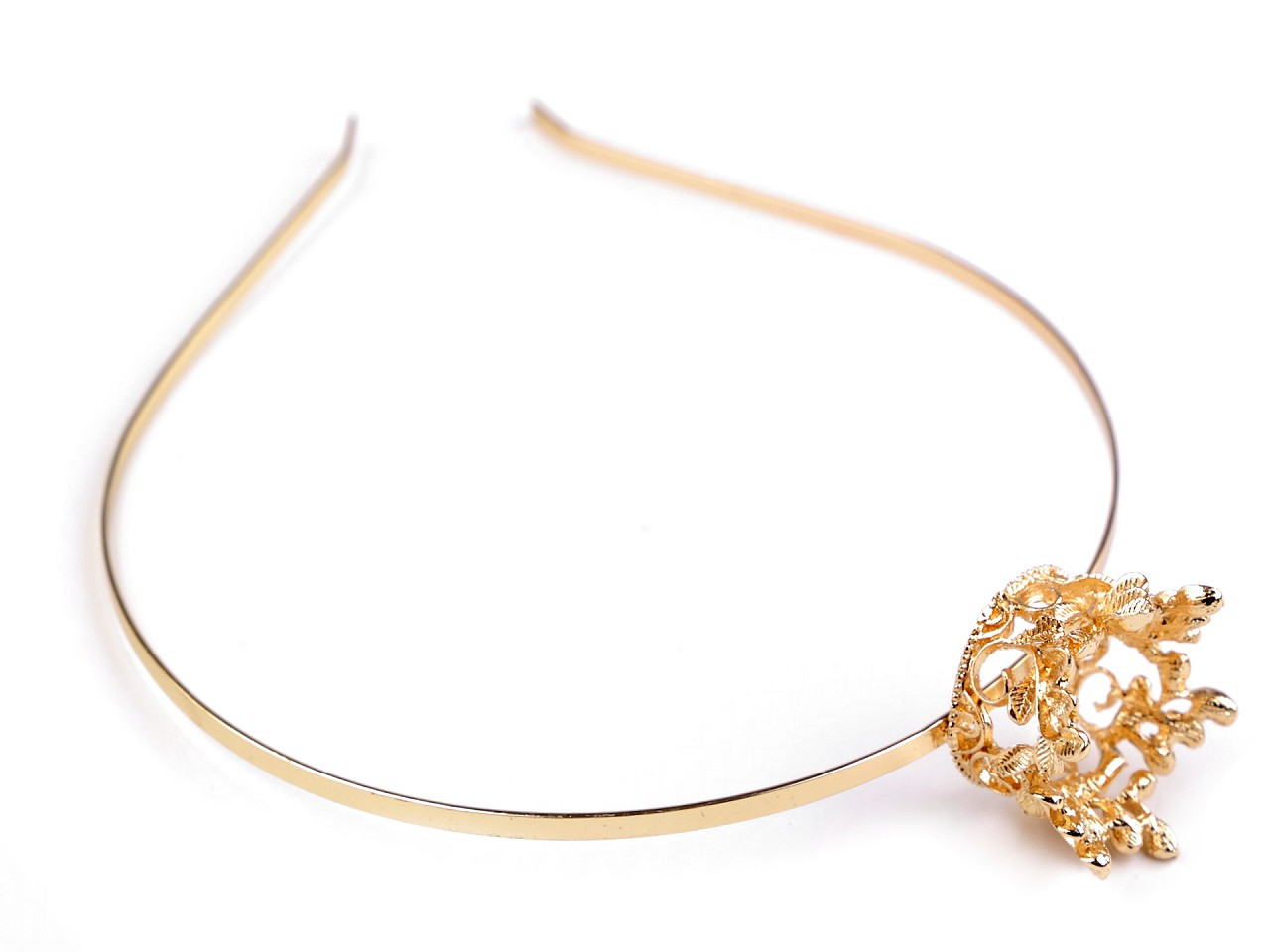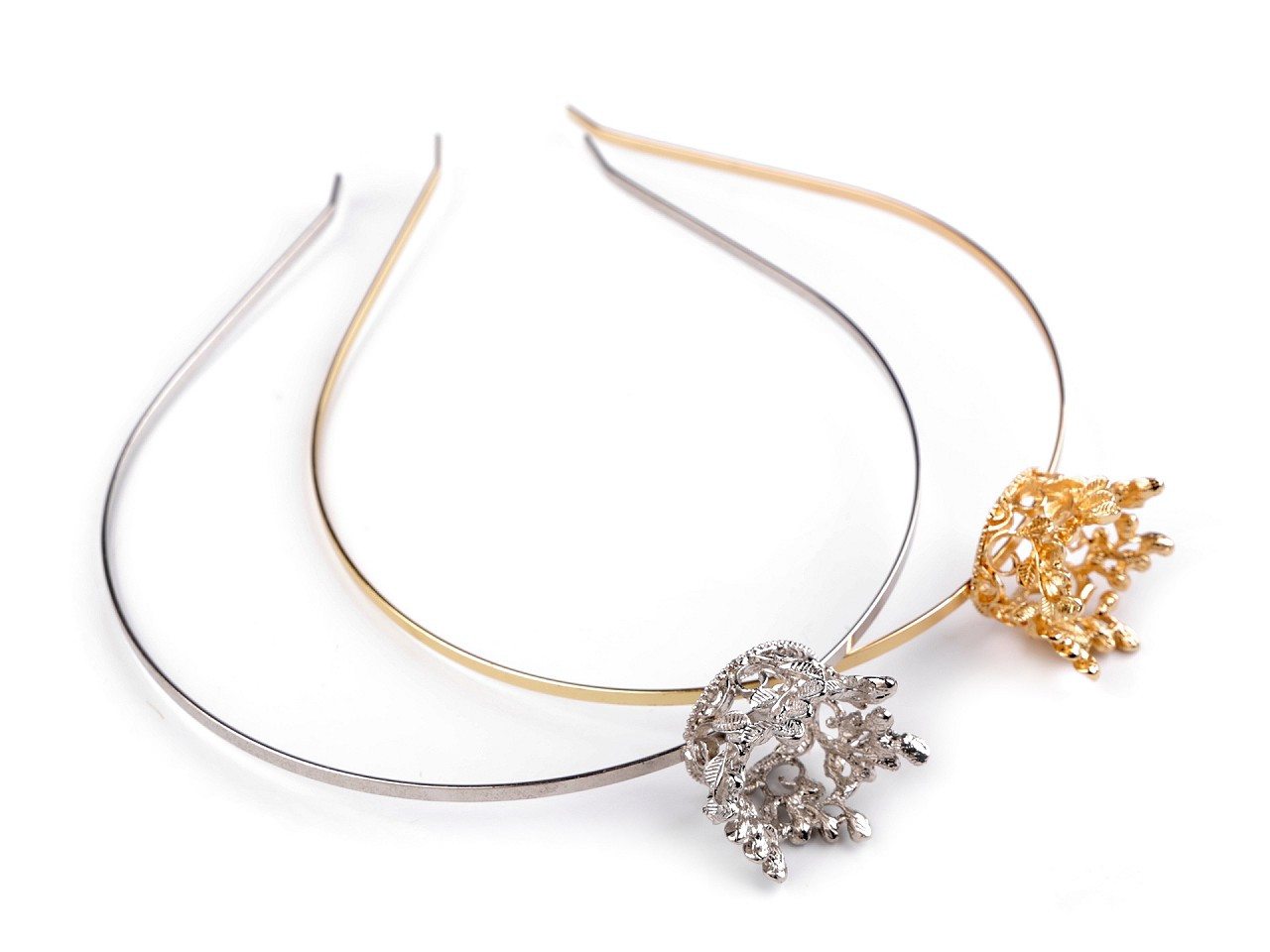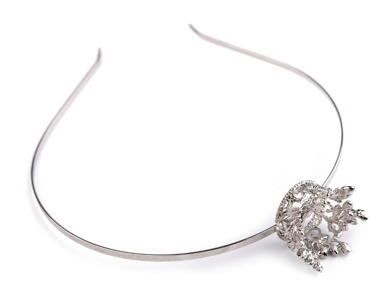Kovová čelenka s korunkou, která je umístěná na stranu, potěší malé i velké slečny. Děti ji využijí na karneval, větší slečny třeba na rozlučku se svobodou. Čelenka vyniká precizním zpracováním.