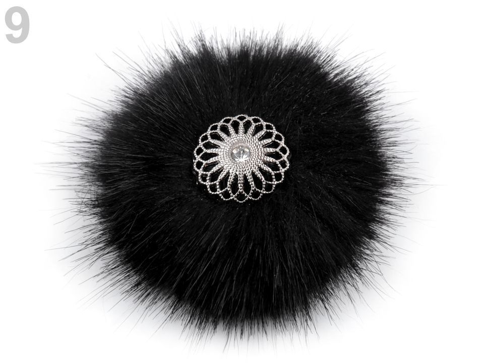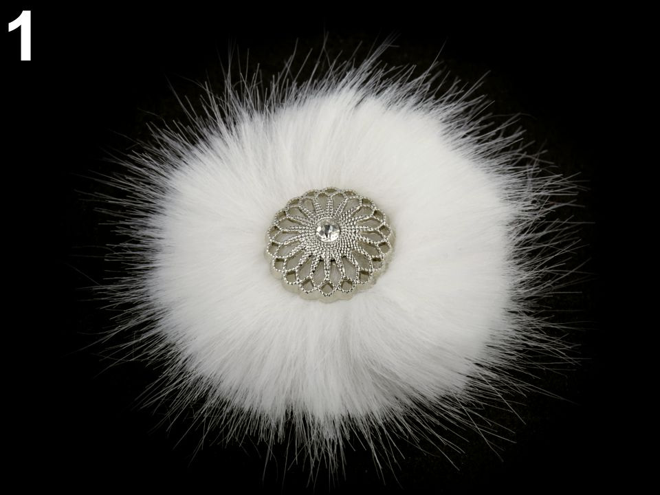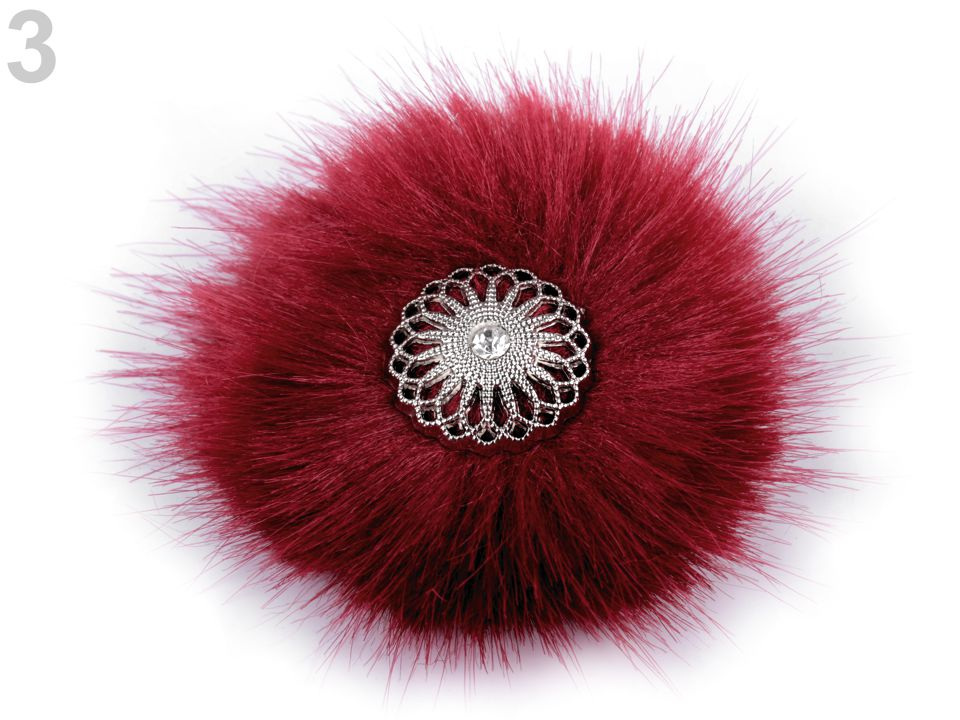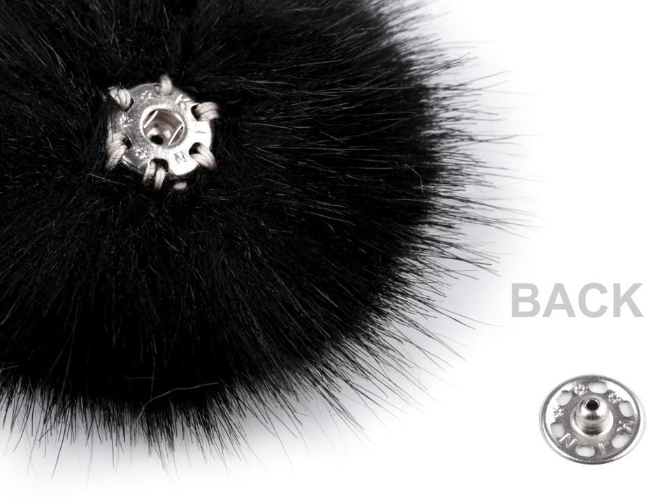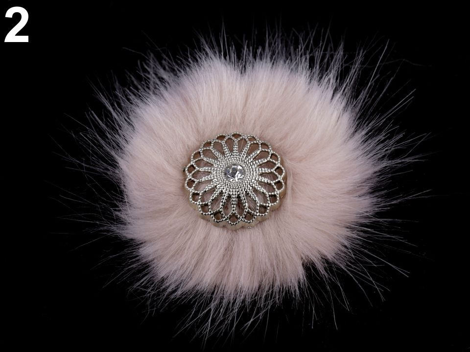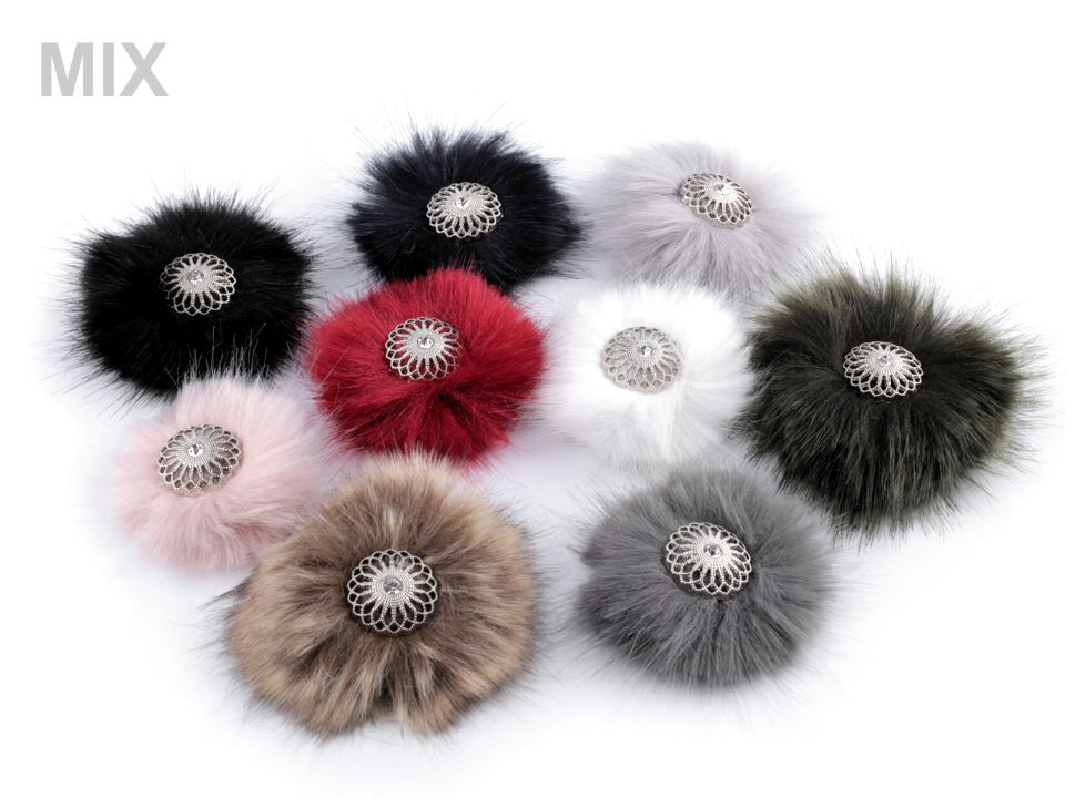 Kožešinová ozdoba nadchne všechny příznivce těchto střapatých ozdob. Vrchní část zdobí kovová ozdoba s broušeným kamínkem uprostřed, který se krásně třpytí. Ozdoba je k bambuli pevně přišita. Ve spodní části kožešinové ozdoby je patent, kterým ji můžete připevnit k oblečení. Celá kožešinová bambule tak působí jako originální brož.