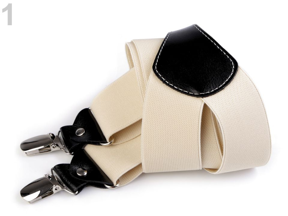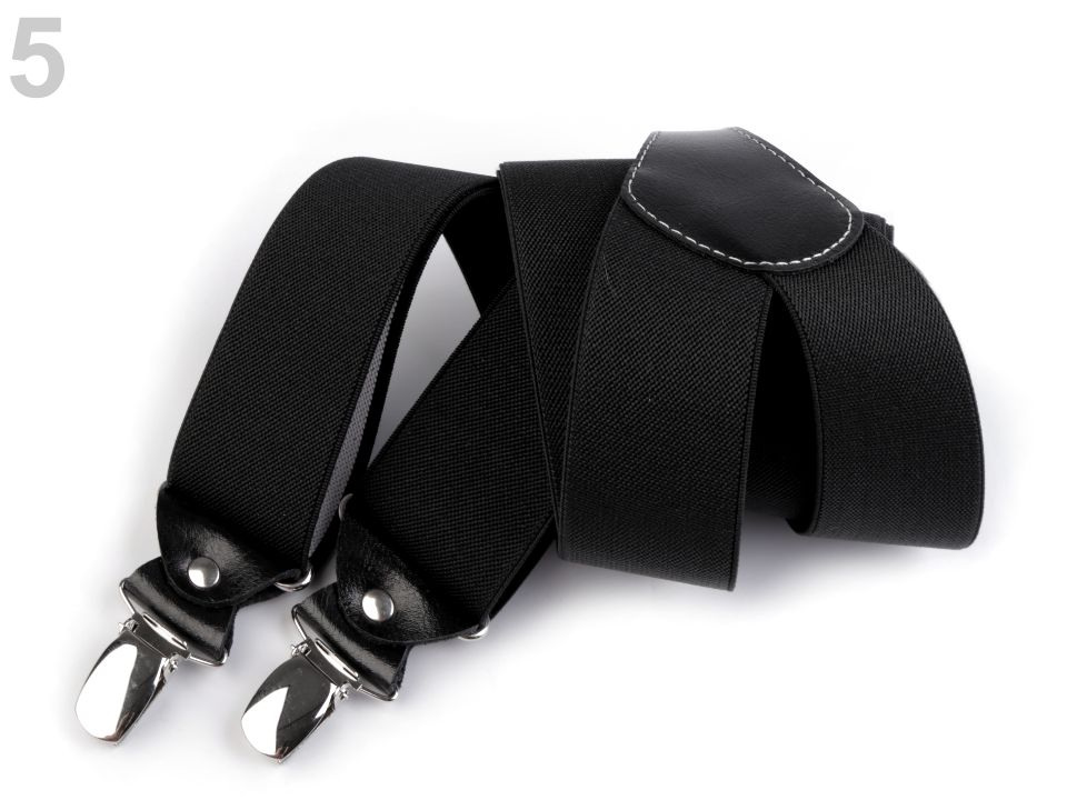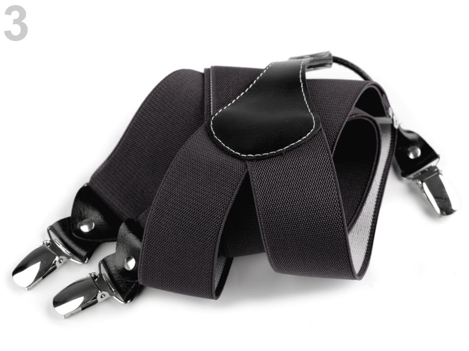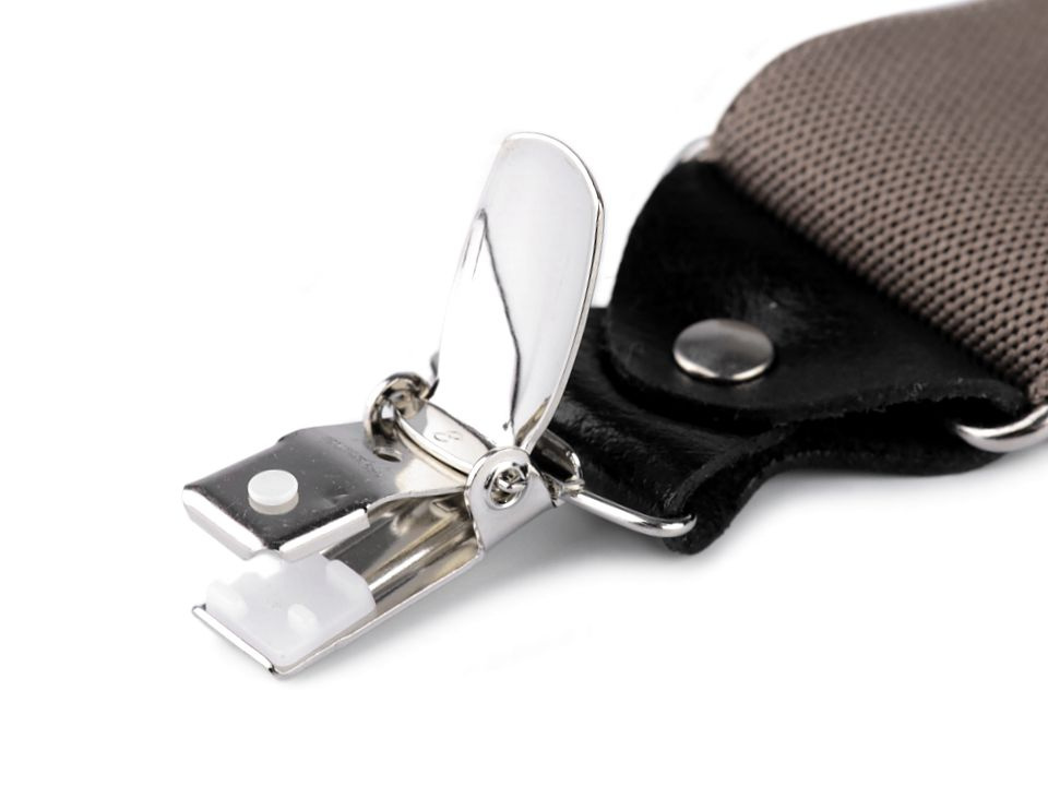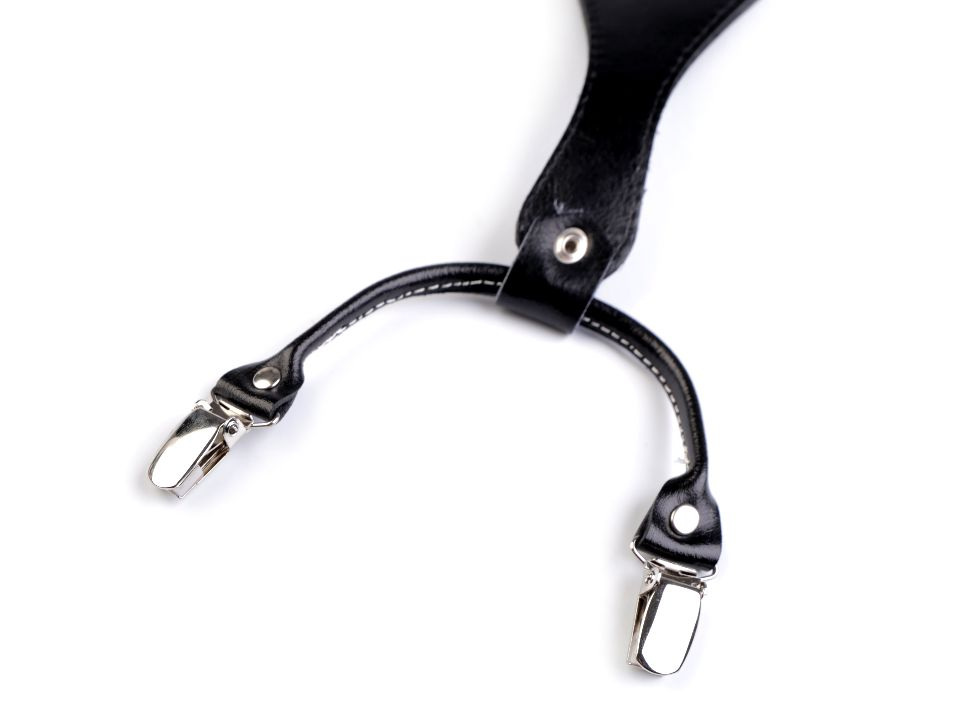 Šíře 3,5 cm a délka 120 cm. Ke kalhotám se upevňují na 4 kovové žabky - 2 vpředu a 2 vzadu.