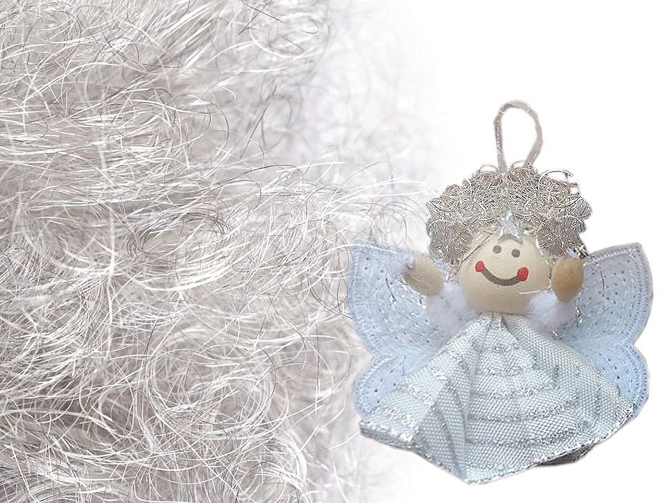 Použití: Andělské vlasy využijete ke zdobení květinových vazeb, figurek či panenek. O Vánocích zajímavě vyniknou na stromku a adventním věnci.