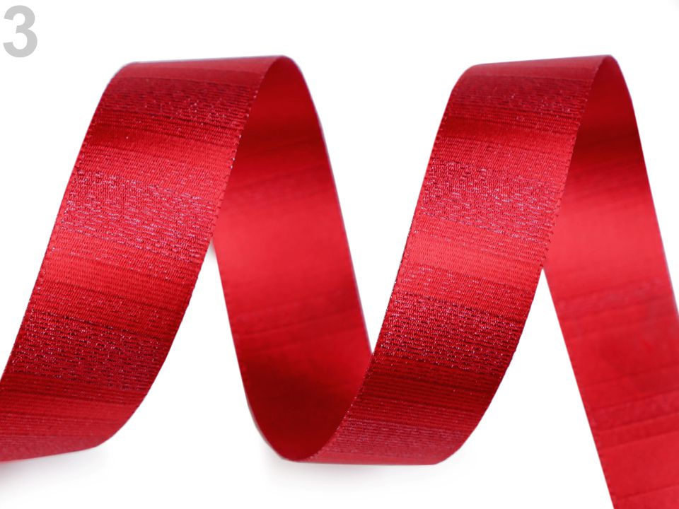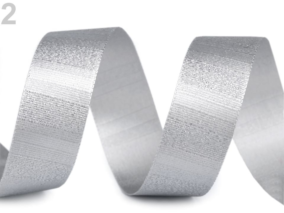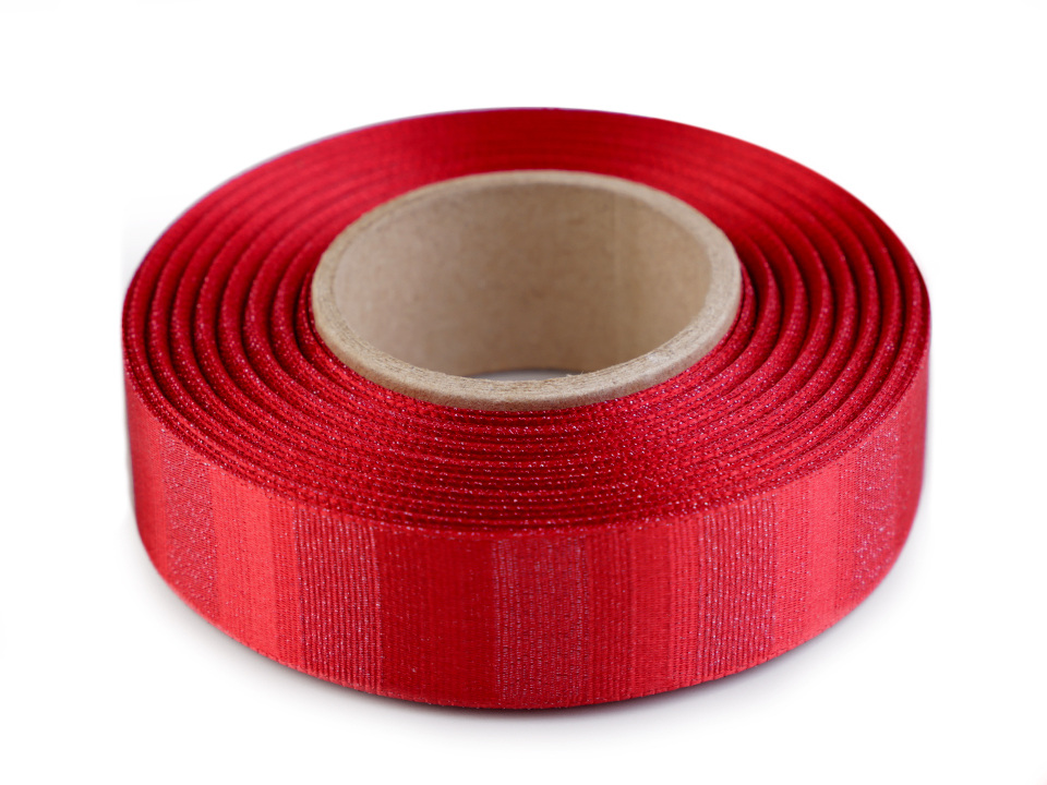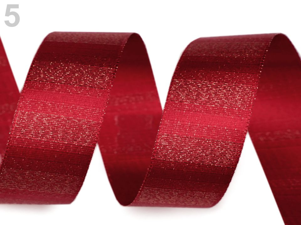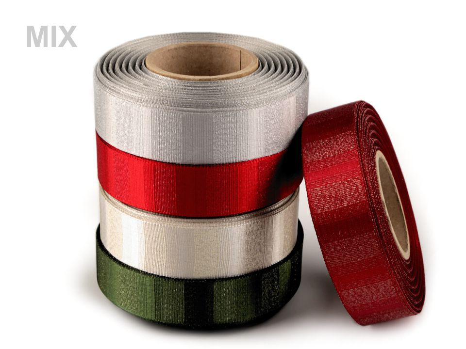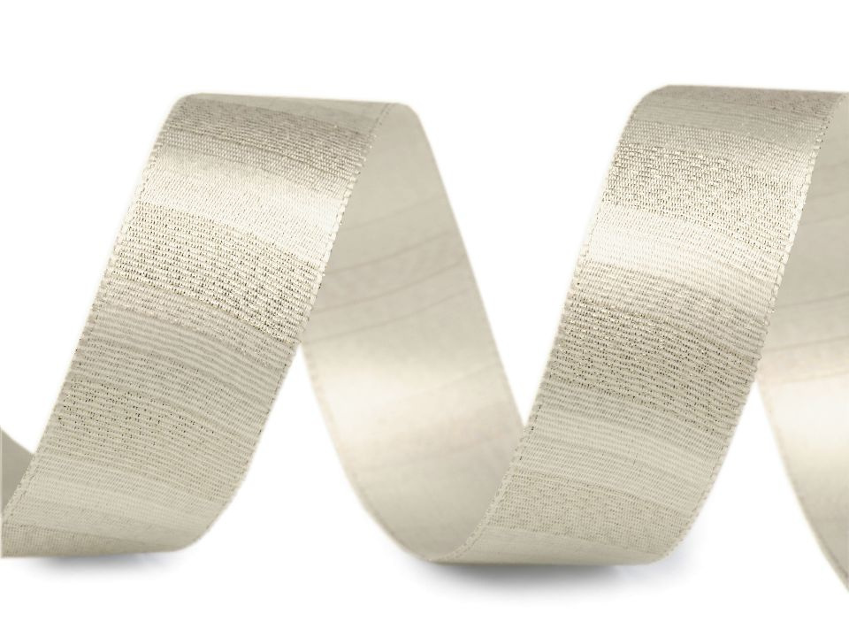 Lesklá dekorační stuha s jemnými proužky se díky přidaného lurexu zajímavě třpytí.