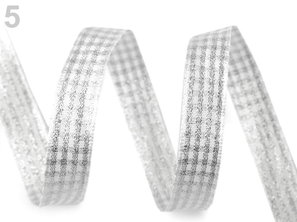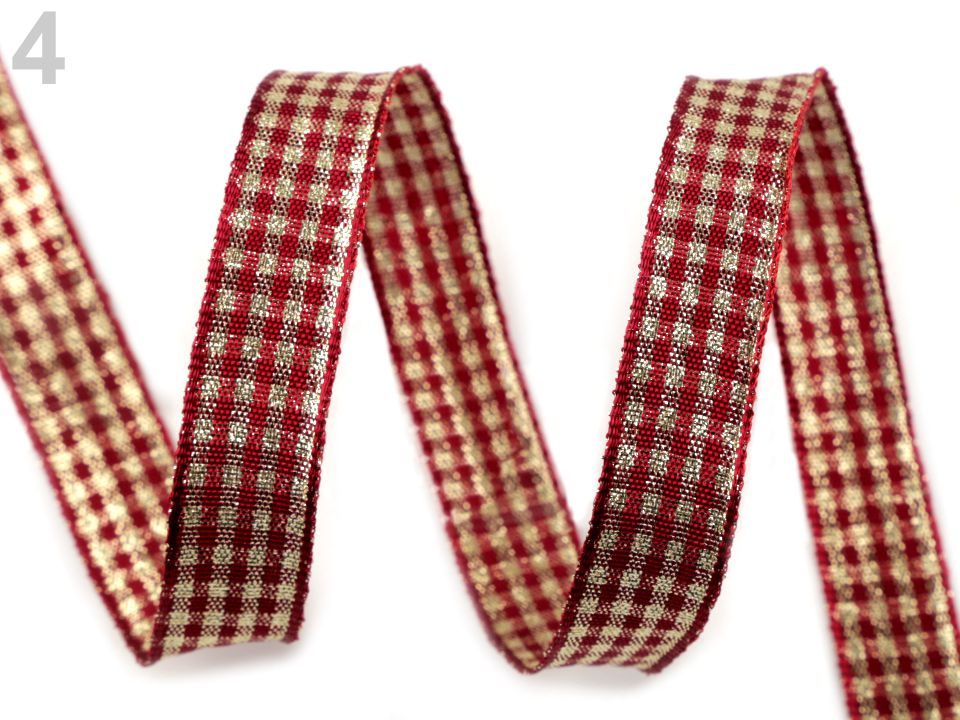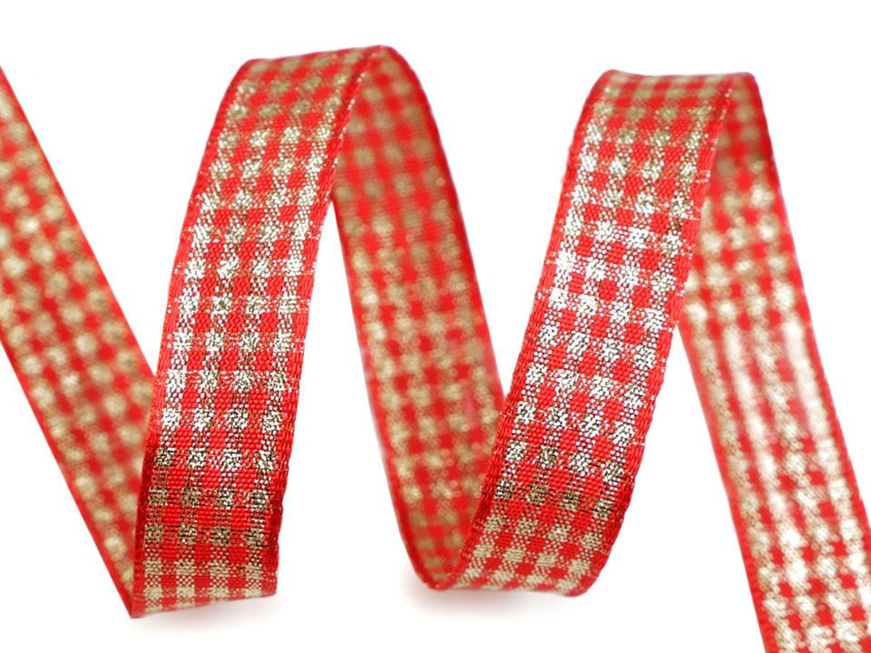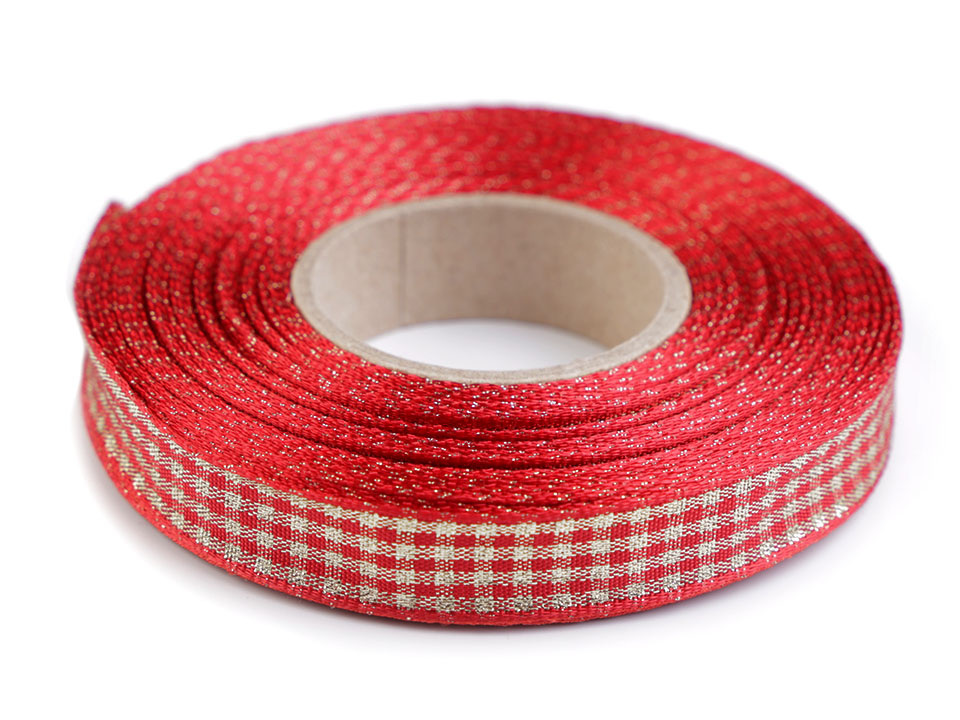 Károvaná stuha se díky lurexu působivě třpytí. Je oboustranná a pevná. Díky kovovým drátkům po stranách stuha skvěle drží tvar.