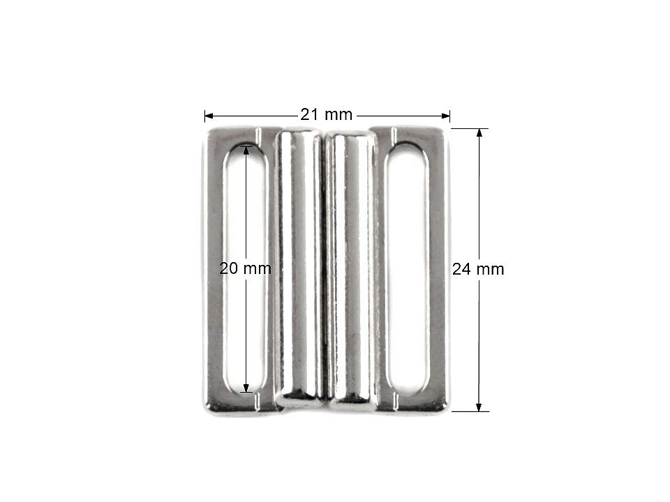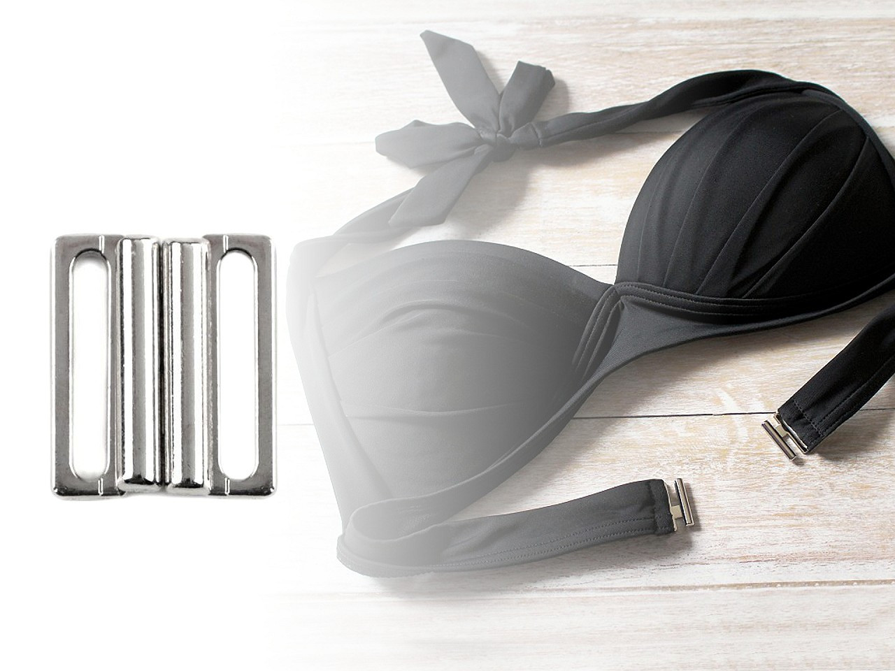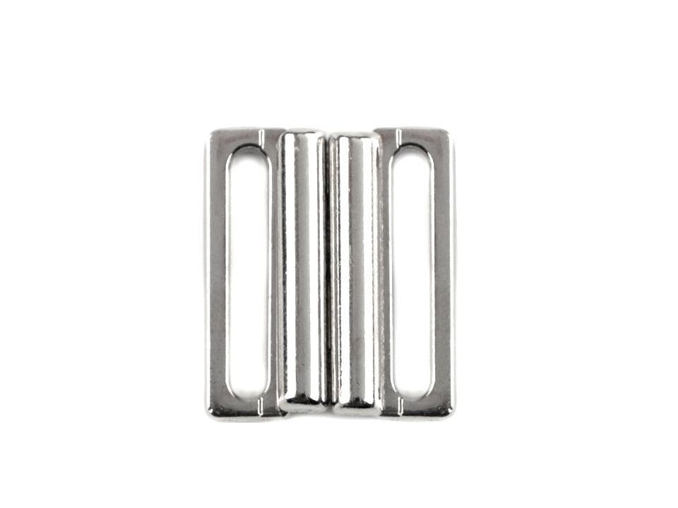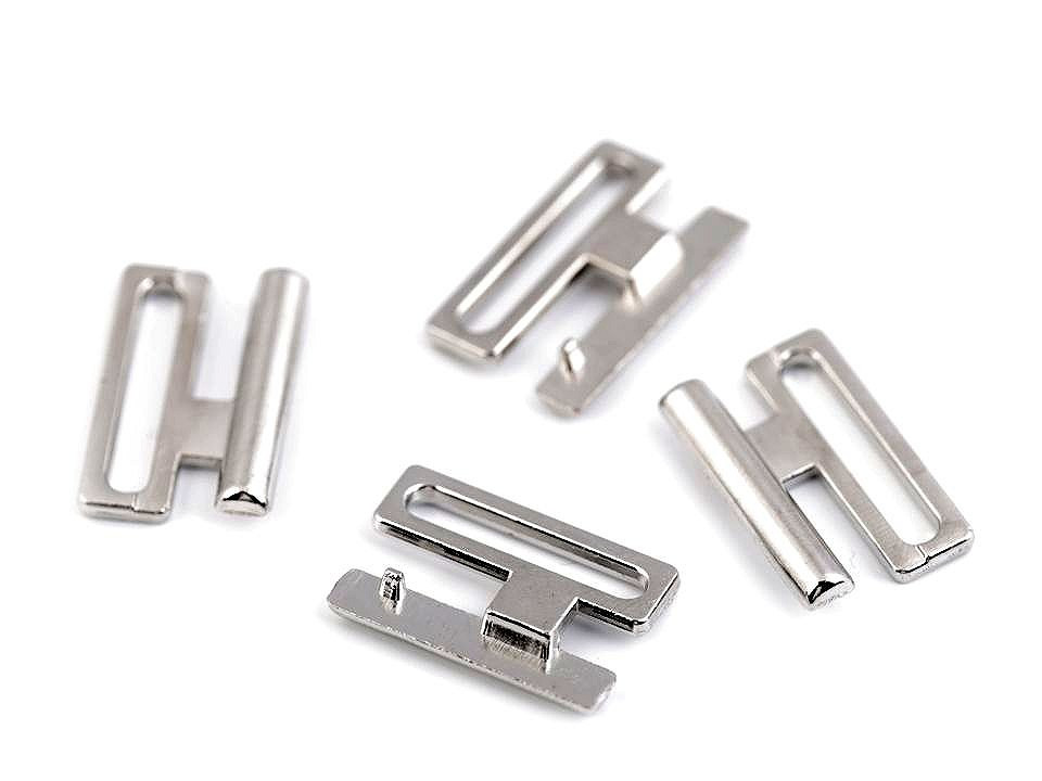 Zapínání na plavky je vyrobeno z nemagnetického kovu s příměsí zinku. Zapnete ho vsunutím jednoho dílu mezi druhý díl. Rozměry jednoho dílu spony jsou 15 x 24 mm.