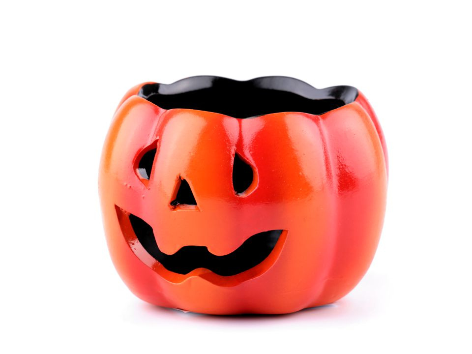 Keramický svícen v podobě dýně je stylovou podzimní či halloweenskou dekorací. Má v sobě otvory, kterými prosvítá světlo ze svíčky.