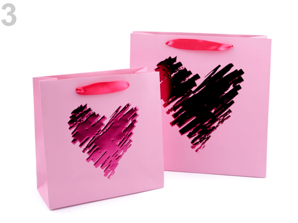 Tašky č. 3 a 4, se srdcem, mají rozměry 20 x 20 x 8 cm a 25 x 25 x 10 cm.