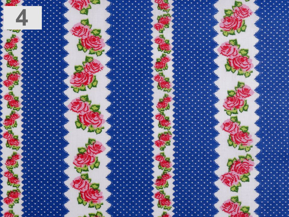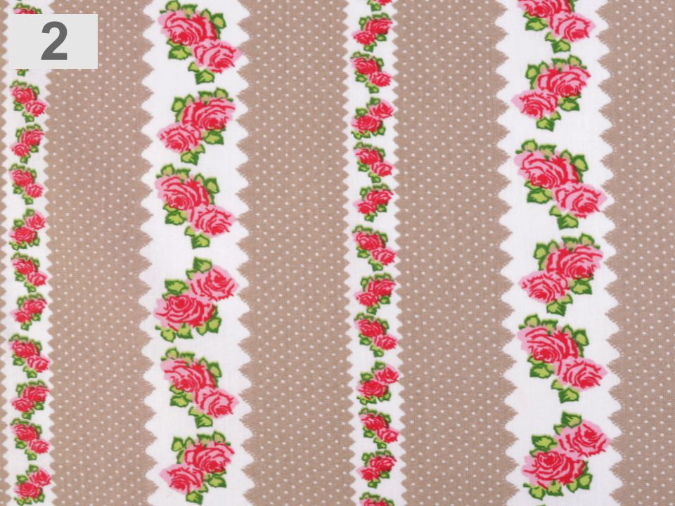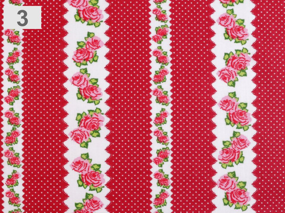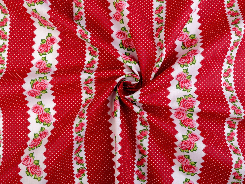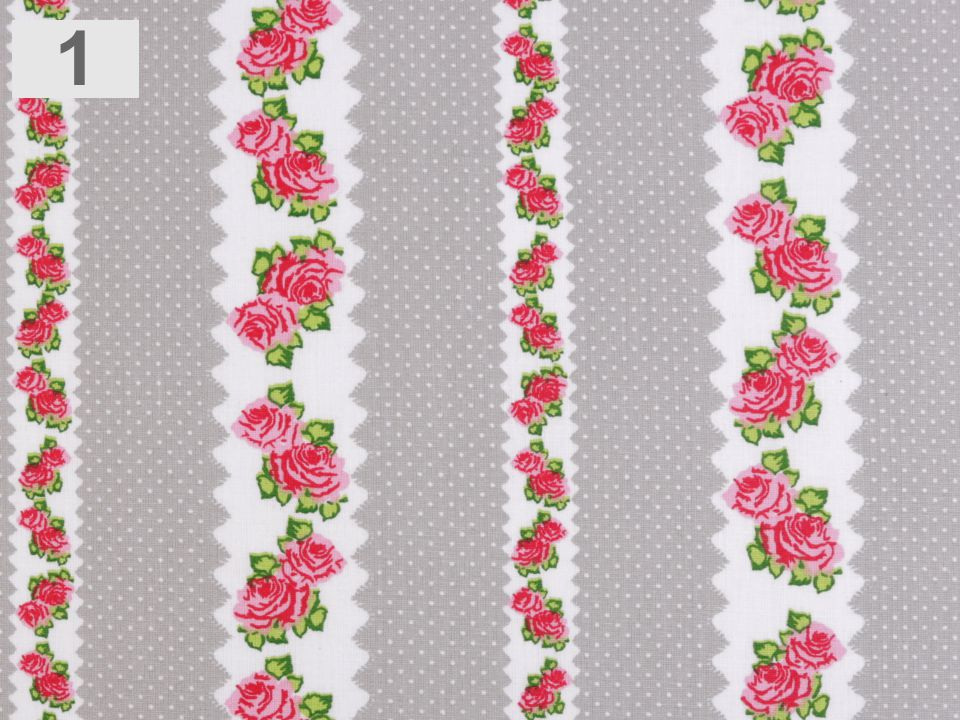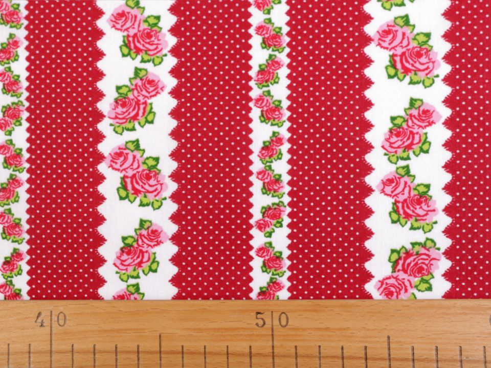 Bavlněná látka s romantickým designem růží a puntíků je příjemná na dotek.