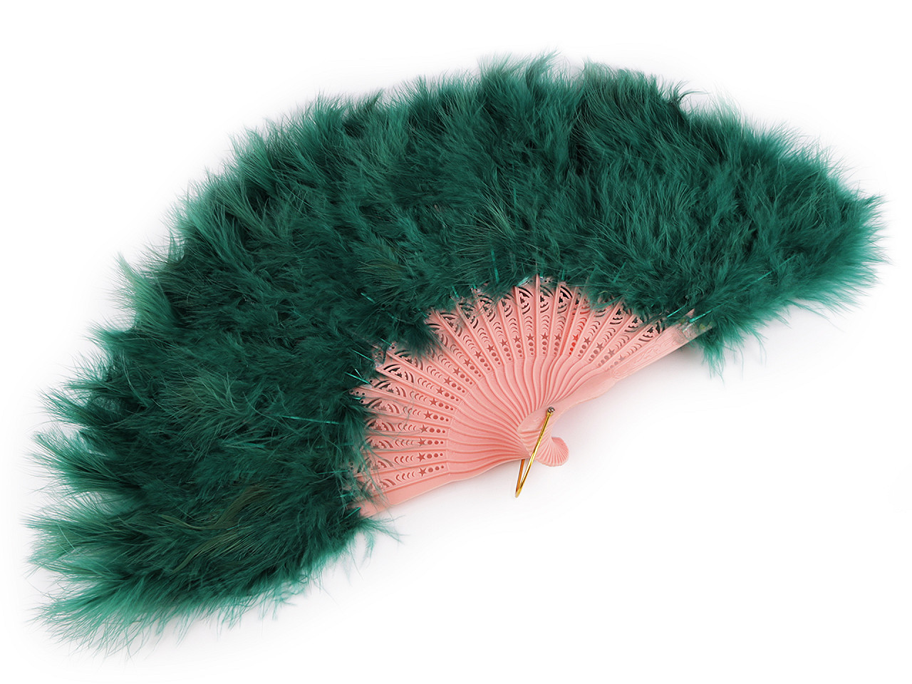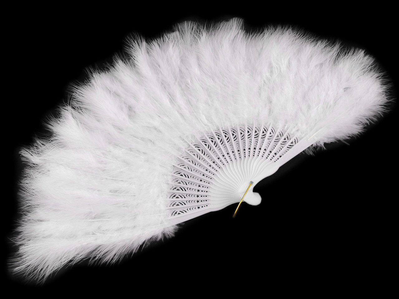 Vějíř z peří je vhodný jako doplněk ke všem příležitostem – na ples, karneval či na tematickou párty. Vějíře jsou dostupné v mnoha barvách. Balené jsou po 1 kuse. Složený vějíř má rozměry 28 x 30 cm, po rozložení – rozpětí horní části 50 – 65 cm, spodní 17 – 20 cm, rukojeť 1 x 3 x 28 – 30 cm.