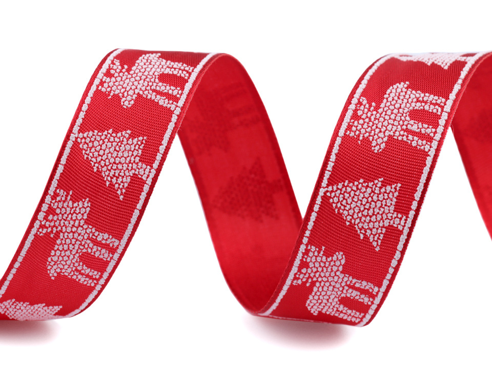 Dekorační saténová stuha s potiskem sobů a stromečků. Díky drátkům po stranách perfektně drží tvar při aranžování. Potisk je jednostranný.