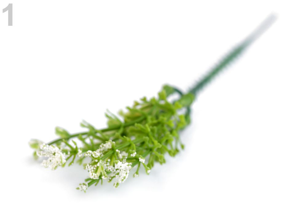 Umělý vřes je tvořený z drobných polystyrenových kuliček. Díky drátu uvnitř stonku ho můžete lehce tvarovat.