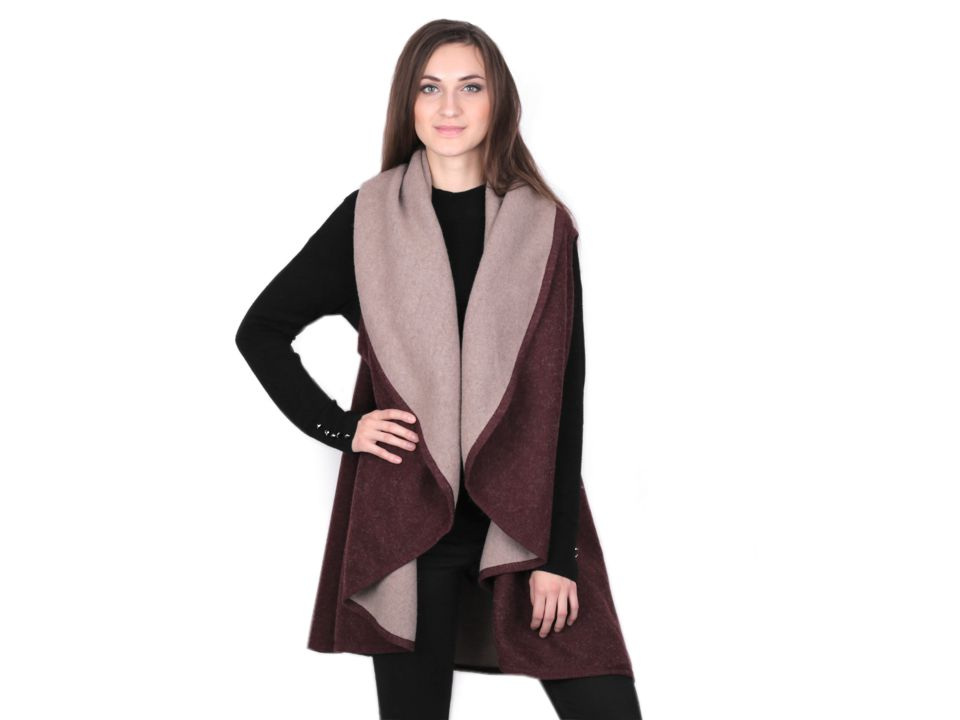 Oboustranná dámská vesta / kardigan má důmyslný střih, který lichotí každé postavě. Materiál je pevný, bude vás příjemně hřát. Tento ležérní kousek můžete skvěle kombinovat s ostatním oblečením. Můžete jej nosit na obě strany - každá strana má jinou barvu.