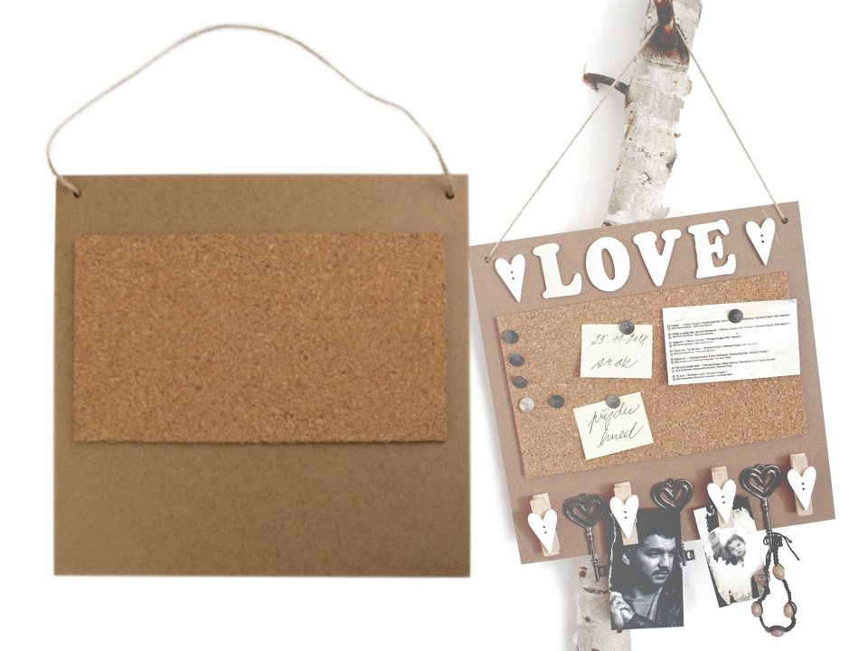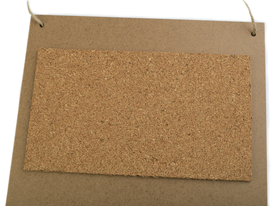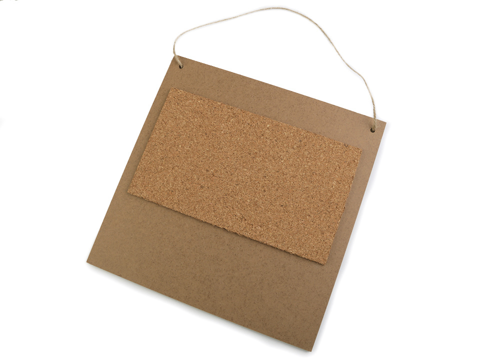 Tabulka s korkem dozdobená podle vaší fantazie se stane vaší oblíbenou nástěnkou. Nahoře má jutový provázek k zavěšení.