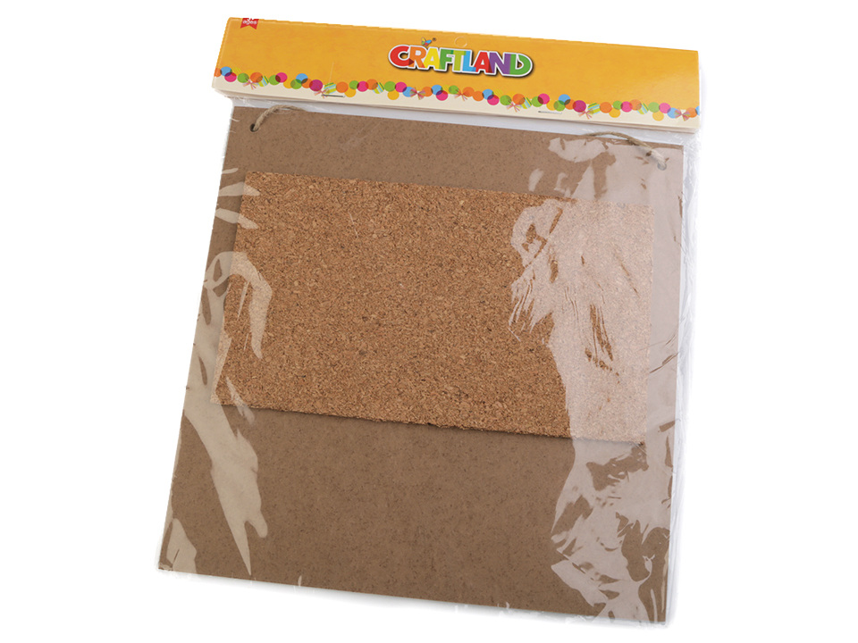Korková část měří 12 x 21 cm, má tloušťku 4,5 mm. Spodní část je vyrobená z dřevěné překližky. Můžete ji dozdobit technikou scrapbooking či decoupage. Dá se domalovat např. akrylovými či temperovými barvami, popisovači, glitrovými lepidly, aj. Vytvoříte tak osobitý dárek, který každého potěší.
