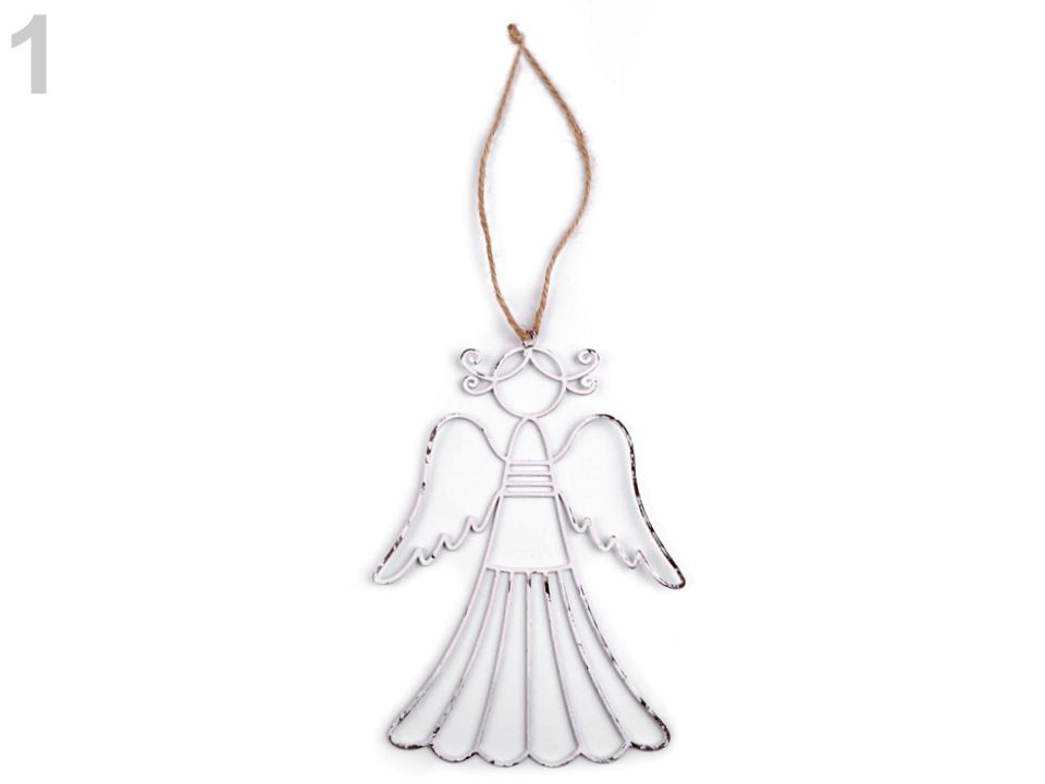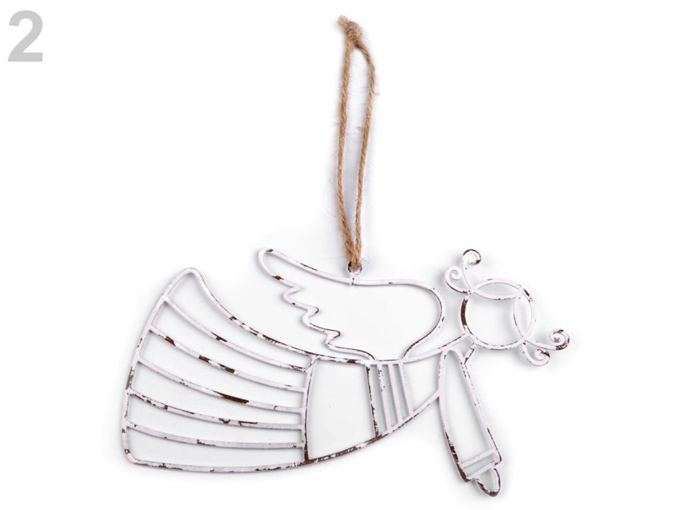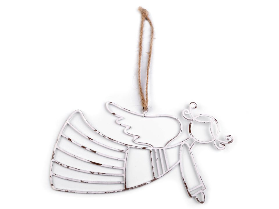 Kovový anděl je zajímavou vintage dekorací. Jeho povrch má jemnou patinu. Díky jutovému poutku ho můžete kamkoli pověsit.