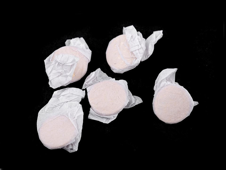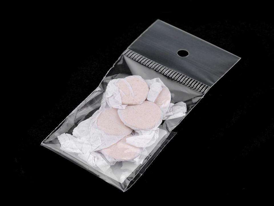 Knoflíky jsou baleny v sáčku, kde je každý z nich ještě zvlášť zabalený v papíře.