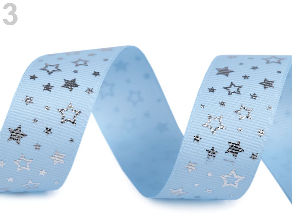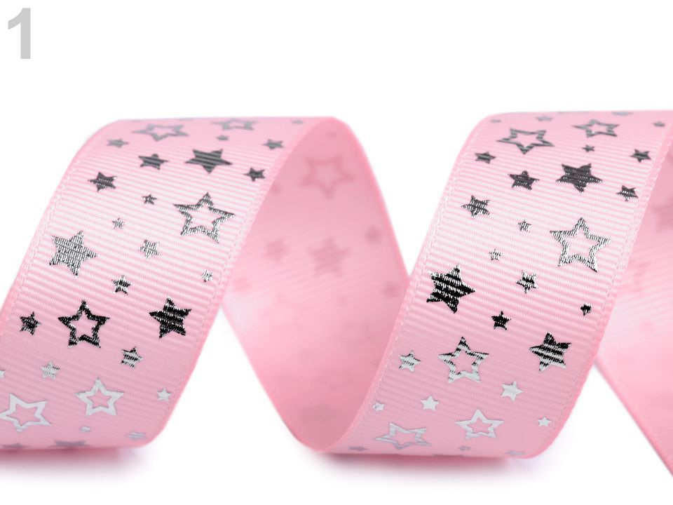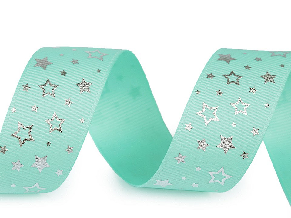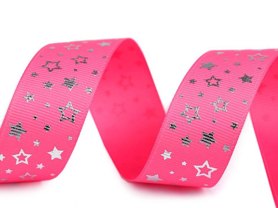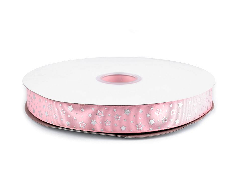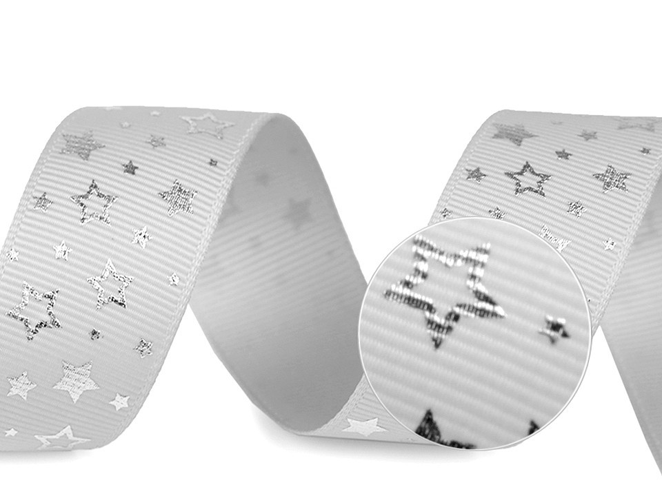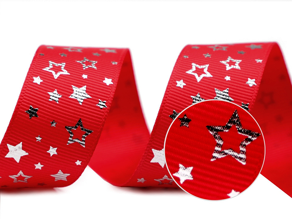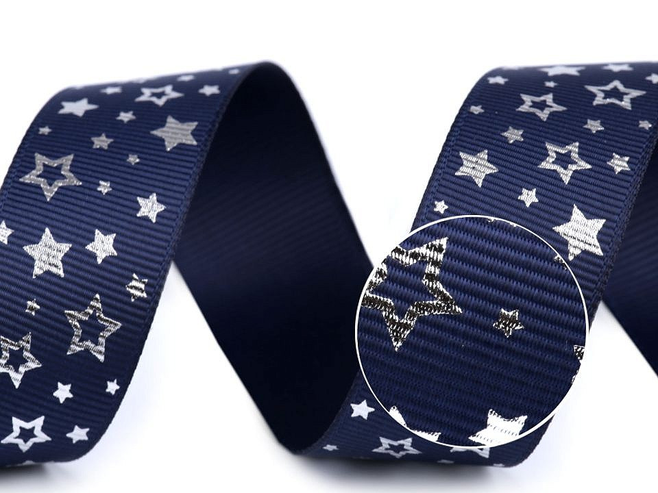 Dekorační rypsová stuha s potiskem hvězdiček má na povrchu typické jemné žebrování. Potisk je jednostranný.