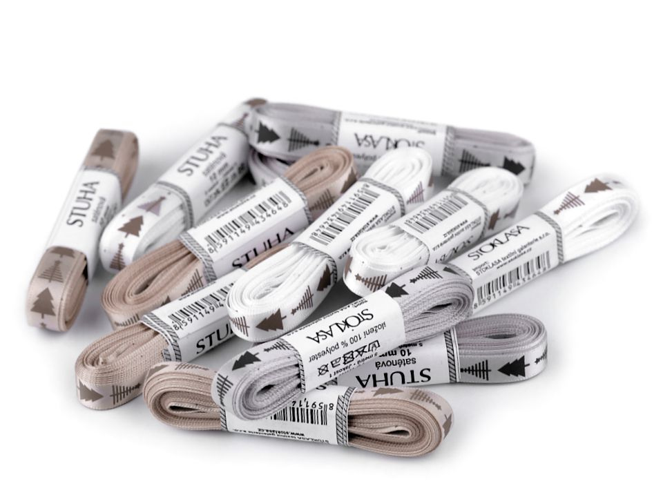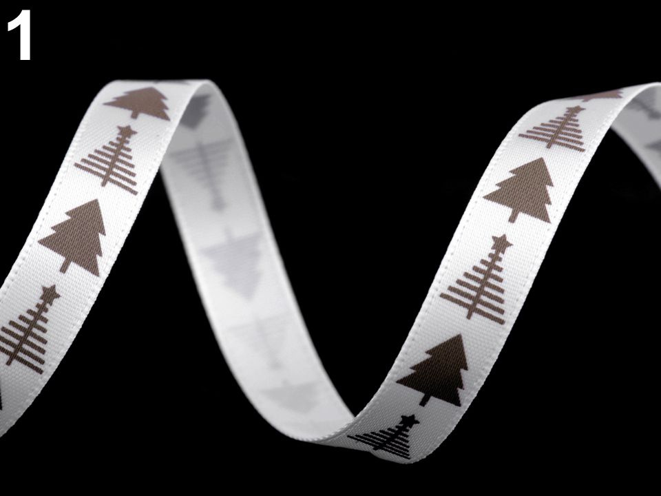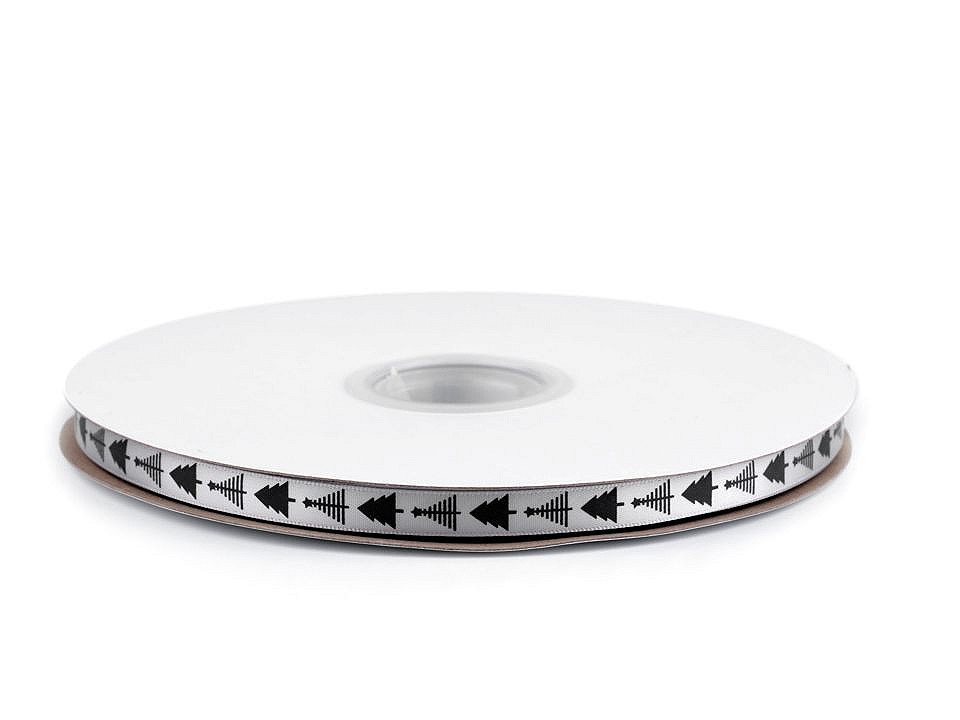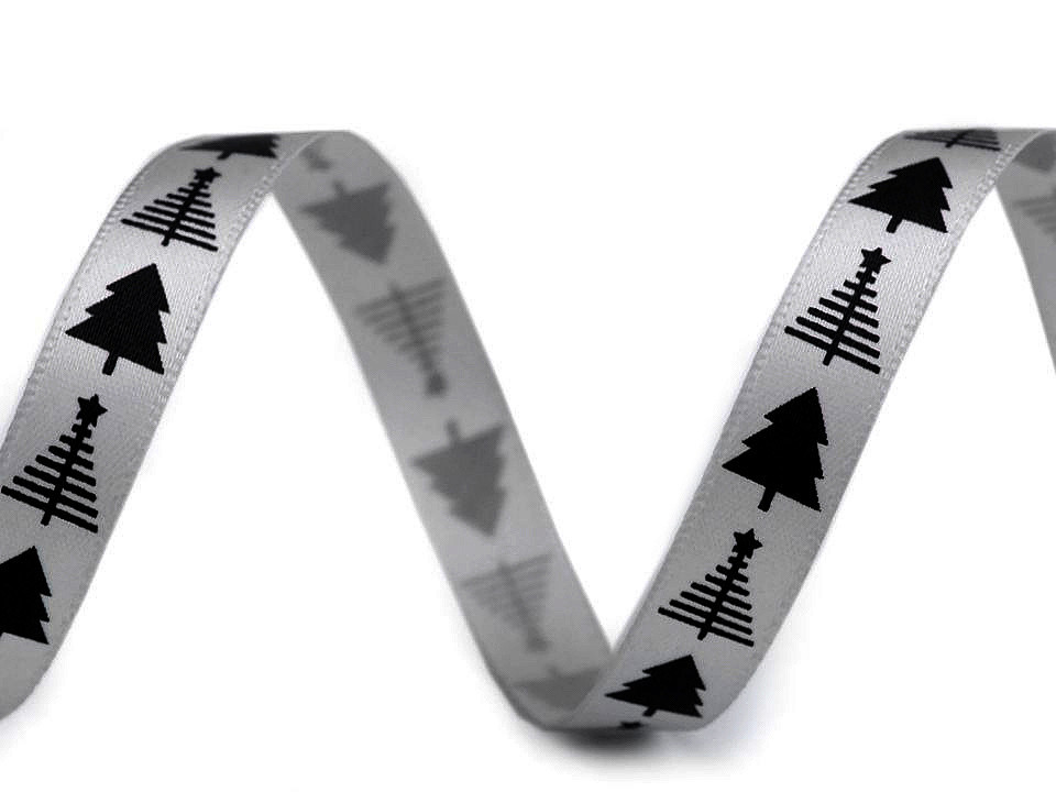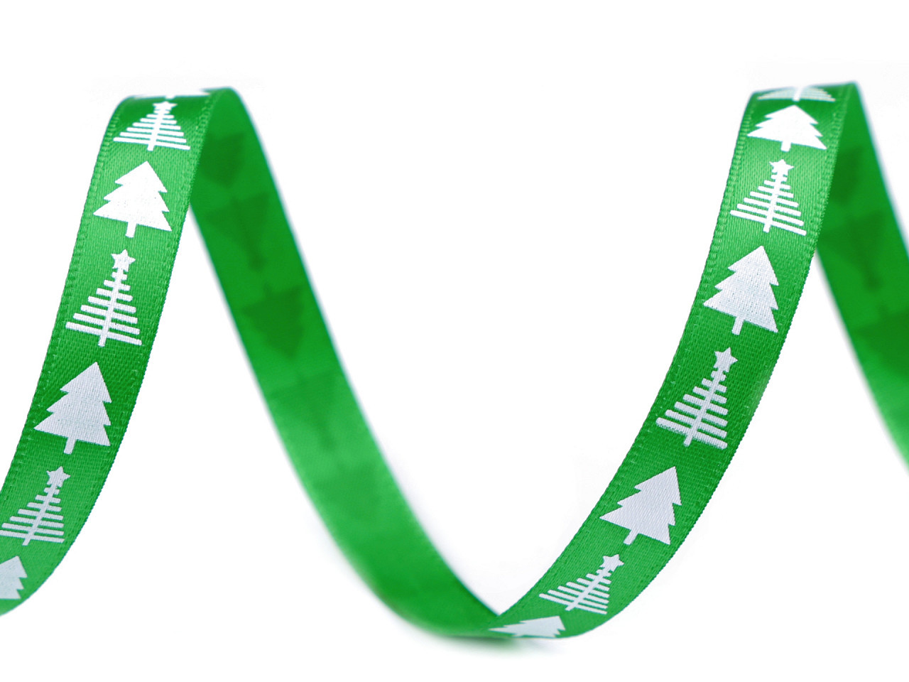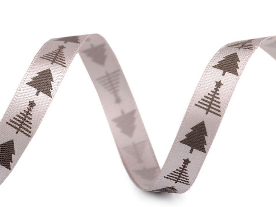 Saténová stuha s potiskem stromečků. Potisk je jednostranný.