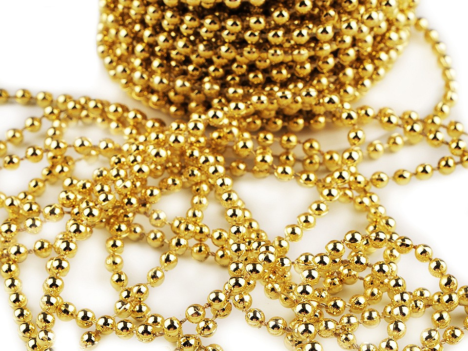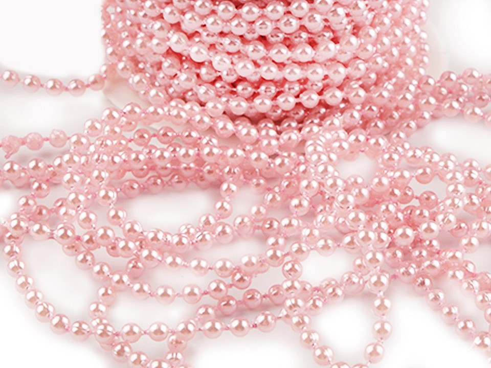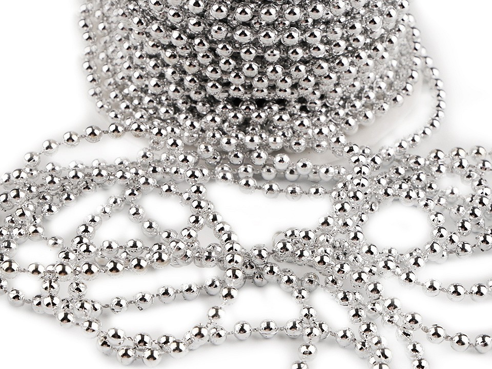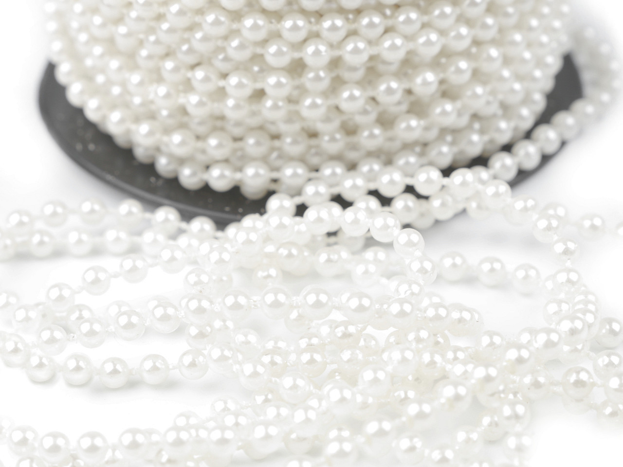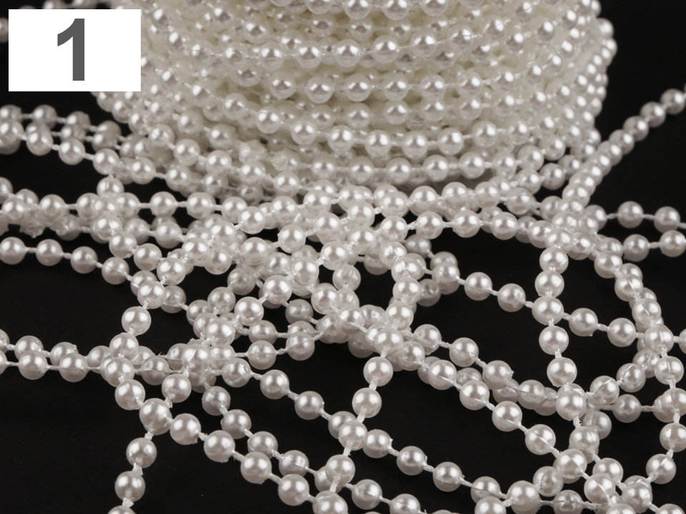 Plastové perly na šňůře využijete na svatební i vánoční aranžmá. Jsou vhodné na ozdobení květinových vazeb, věnců, židlí nebo jako řetěz na stromeček.