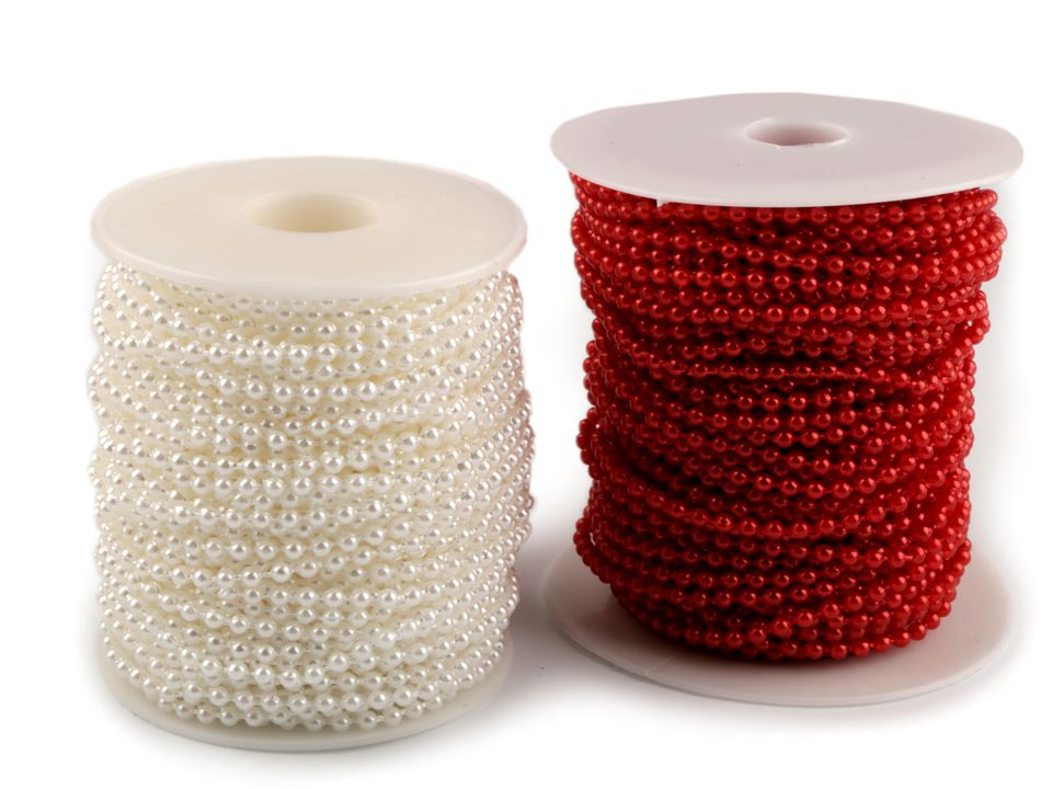 Plastové korálky na šňůře vyniknou jako vánoční řetěz na stromku, věnci i na sváteční tabuli. Můžete je naaranžovat také do květinových vazeb nebo s nimi zajímavě ozdobit dárky. Jsou vhodné i na svatební aranžmá.