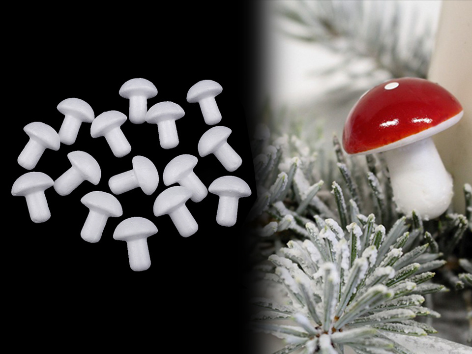 Polystyrenové hříbky jsou skvělým pomocníkem při tvorbě podzimních a halloweenských dekorací. Na jejich povrchu nádherně vynikne malba nebo technika decoupage. Hodí se na zkrášlení věnců nebo ozdobení dekoračních truhlíků a různých podzimních aranžmá.