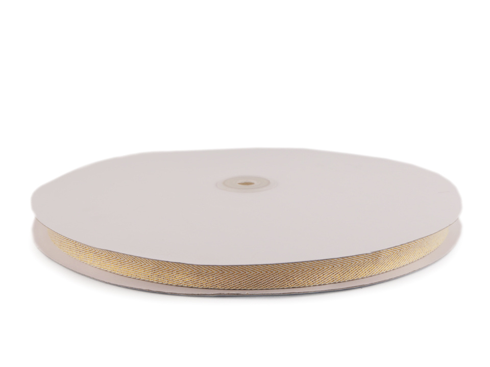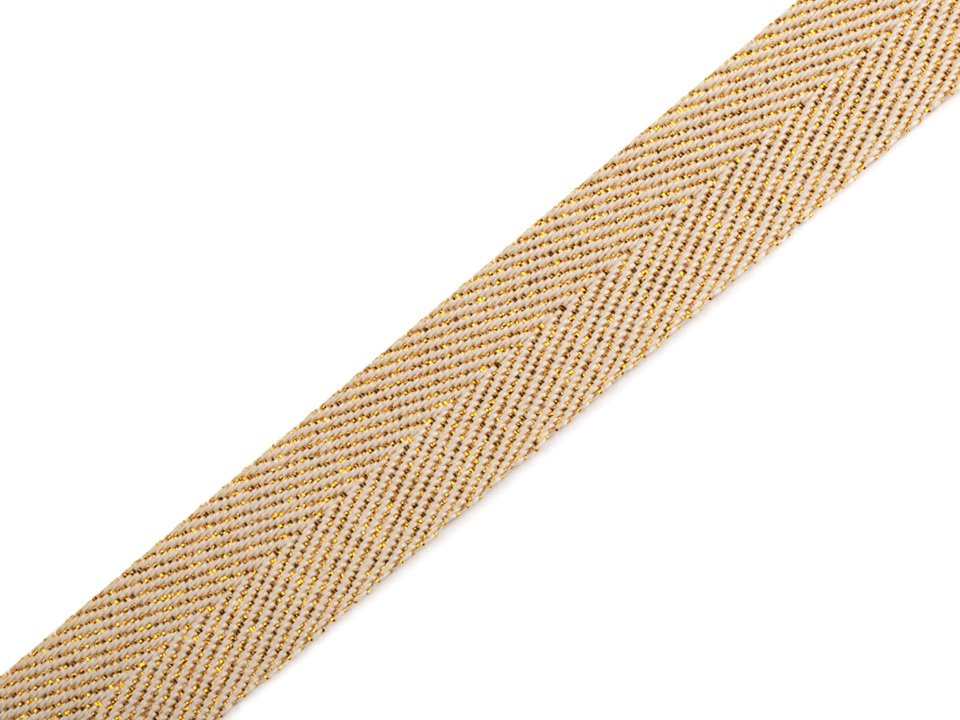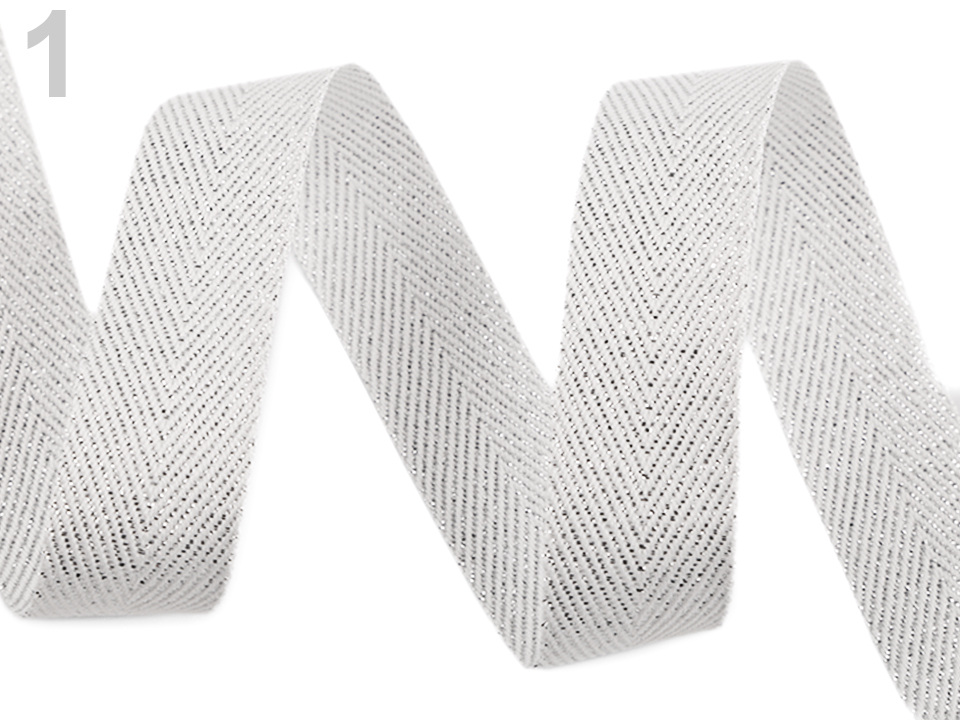 Stuha s lurexem je tkaná pevnou keprovou vazbou, která připomíná stromečky. Díky lurexu se zajímavě třpytí.