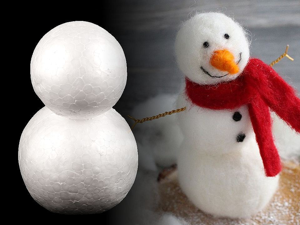 Polystyrenový sněhulák je vhodný k pomalování barvami nebo na ubrouskovou techniku decoupage. Vytvoříte si tak působivou zimní dekoraci. Sněhulák má dobrou stabilitu díky plochému dnu.