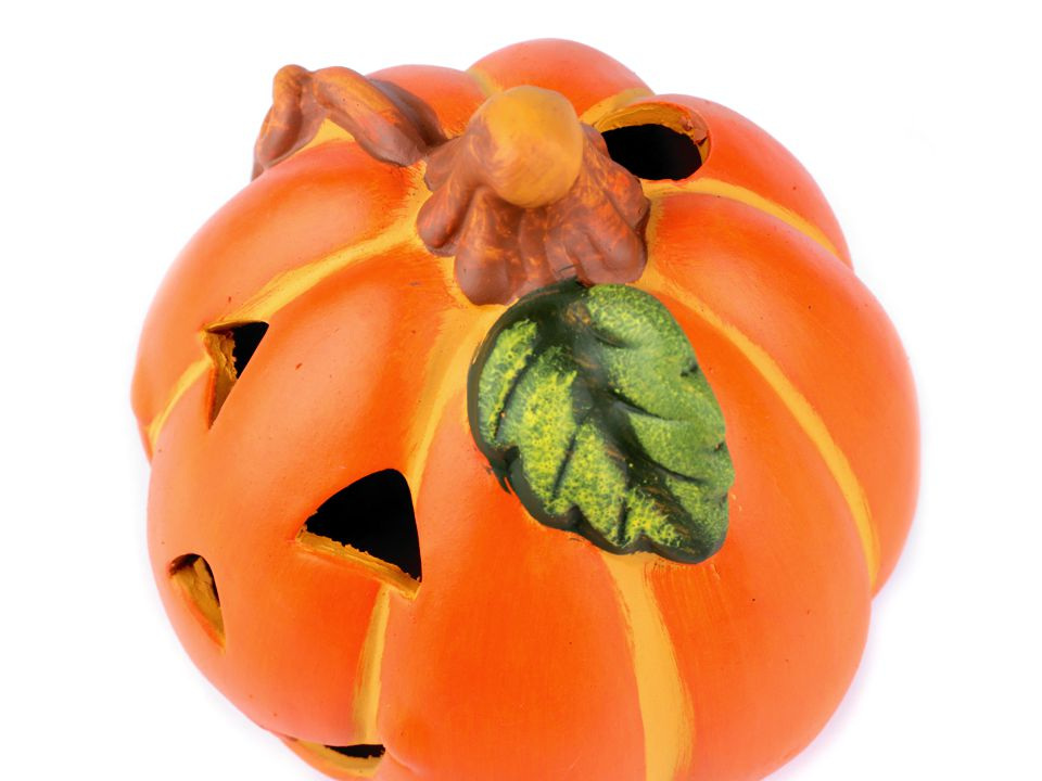 Keramický svícen dýně navodí ve vašem domově atmosféru podzimu a strašidelného halloweenu. Má v sobě otvory, kterými prosvítá světlo ze svíčky.
