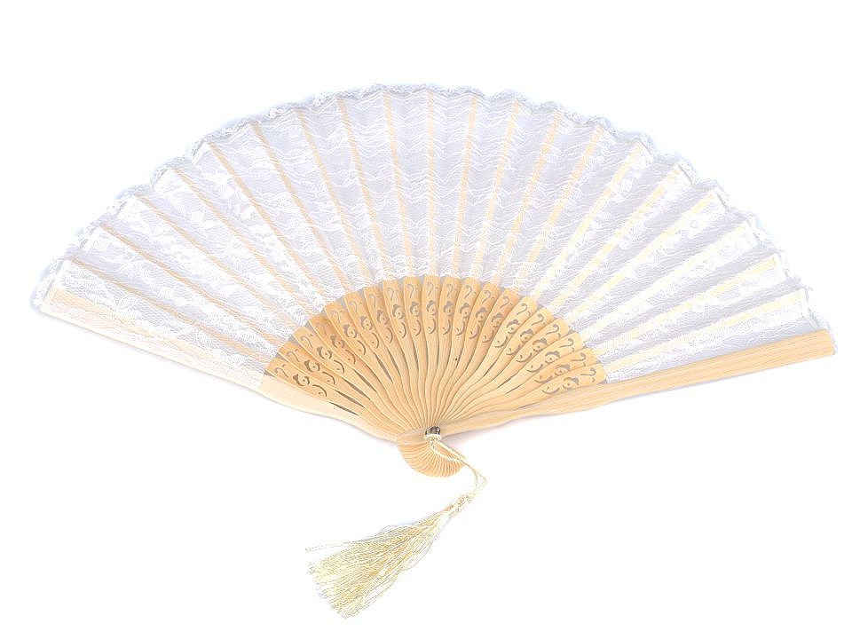 Vějíř je elegantním společníkem žen již od nepaměti. Díky dřevěné rukojeti, kvalitnímu zpracování a detailně propracované krajce s motivem květů, se vějíř stane netradičním doplňkem na ples, karneval či jiné společenské události.
