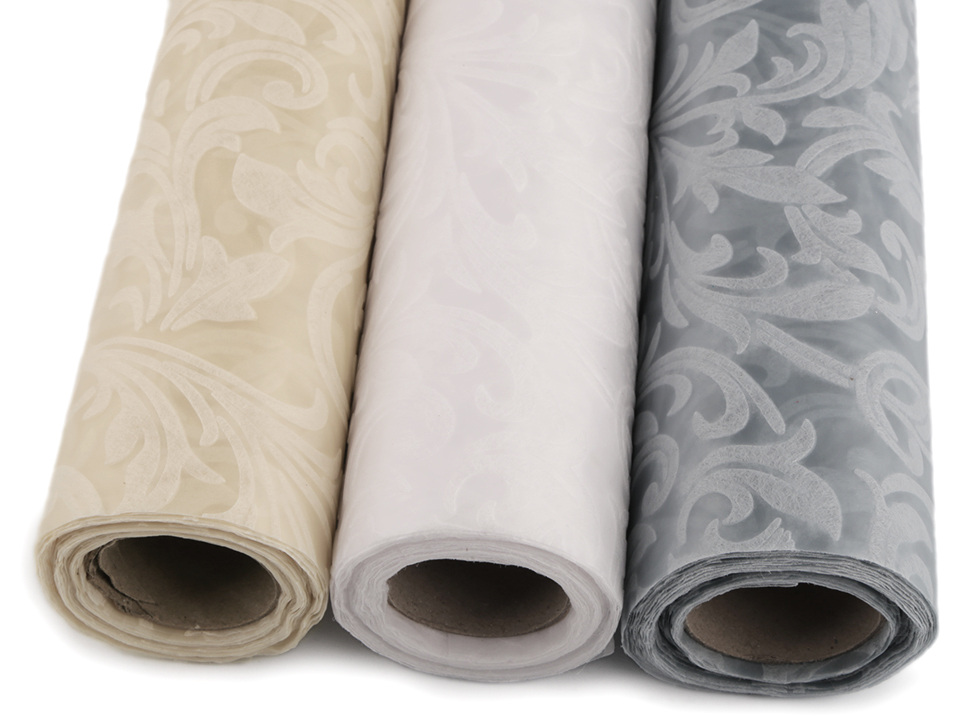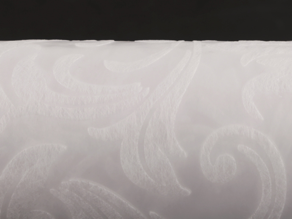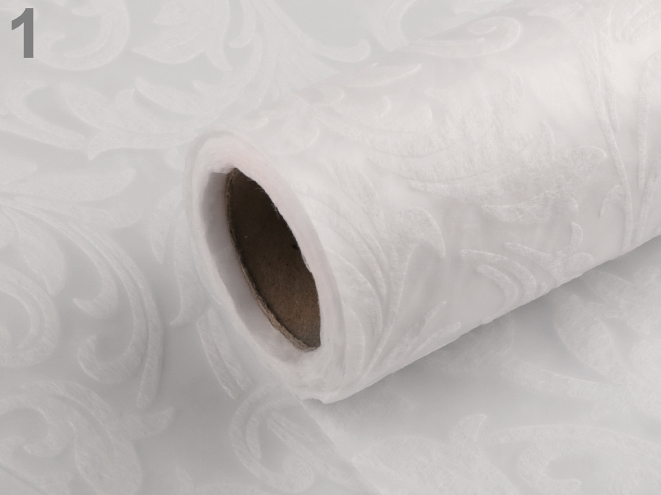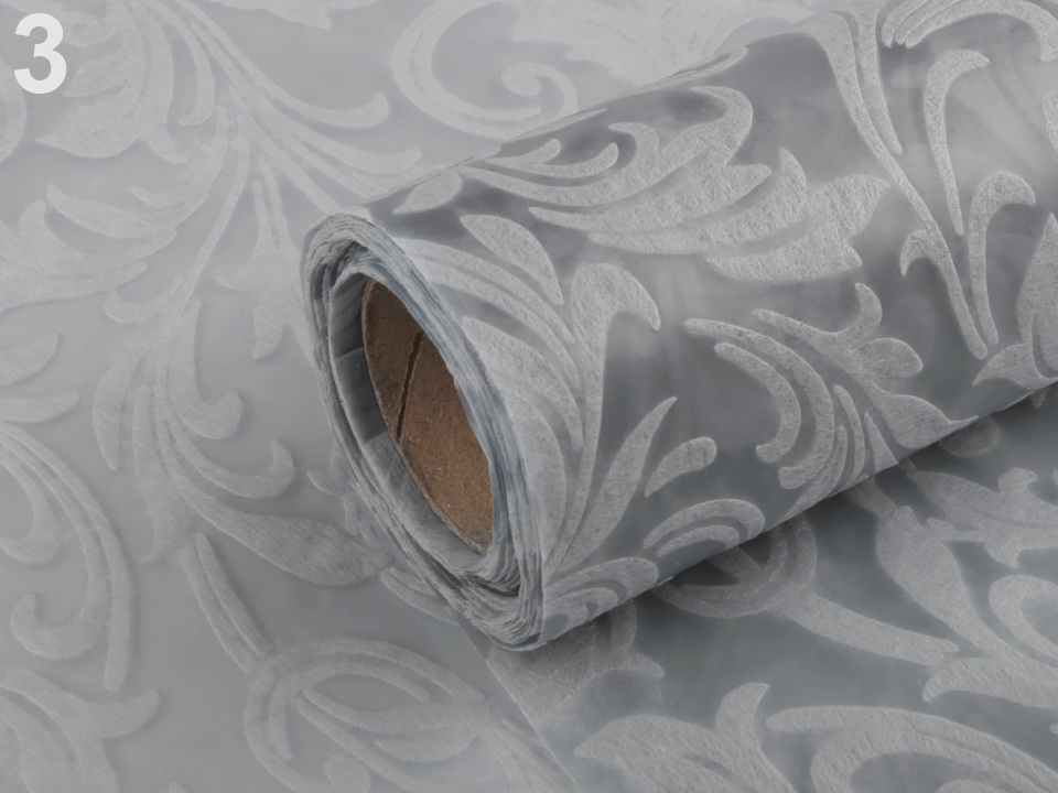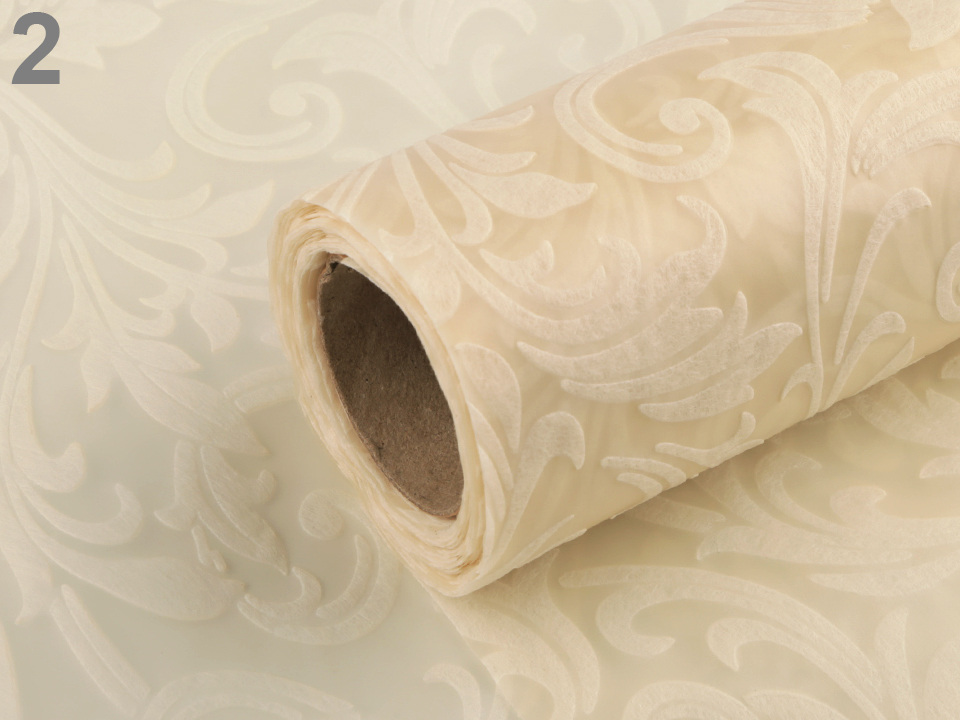 Dekorační metráž zdobí zajímavé ornamenty. Je voděodolná a poloprůhledná (mléčná).