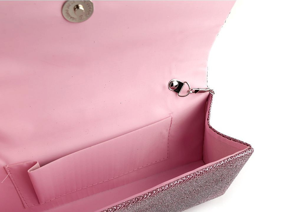 Třpytivé lurexové psaníčko efektně doplní váš outfit při slavnostních příležitostech. Uvnitř má polyesterovou podšívku a malou kapsičku na drobnosti. Zapíná se na magnet. Ke kabelce patří odepínatelný řetízek. Psaníčko můžete nosit s řetízkem přes rameno nebo bez něj jen tak v ruce.
