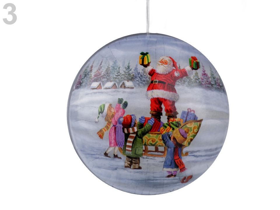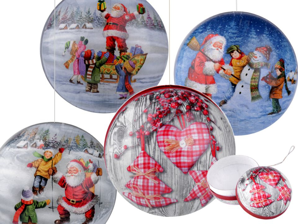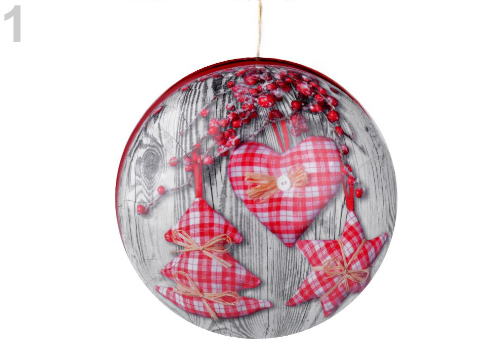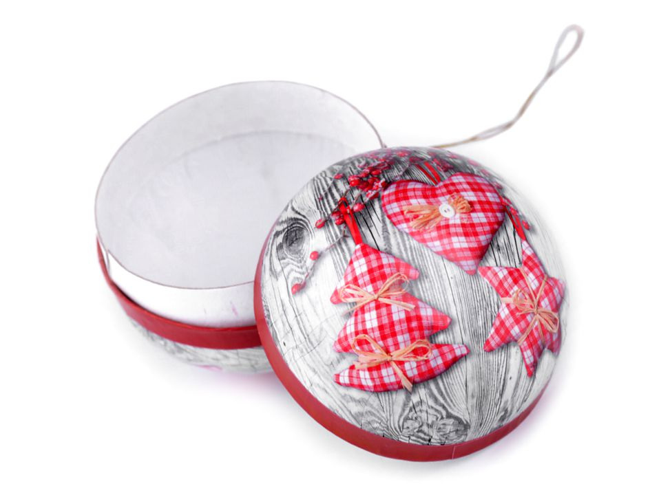 Originální dárková krabička s vánočním potiskem ve tvaru baňky je složená ze dvou rozevíracích půlek. Potisk má tradiční malované obrázky. Nahoře má baňka poutko na zavěšení. Díky ní vtipně a pohodlně zabalíte dárek, který můžete ukrýt na stromečku, takže hledání dárku bude zábavnější.