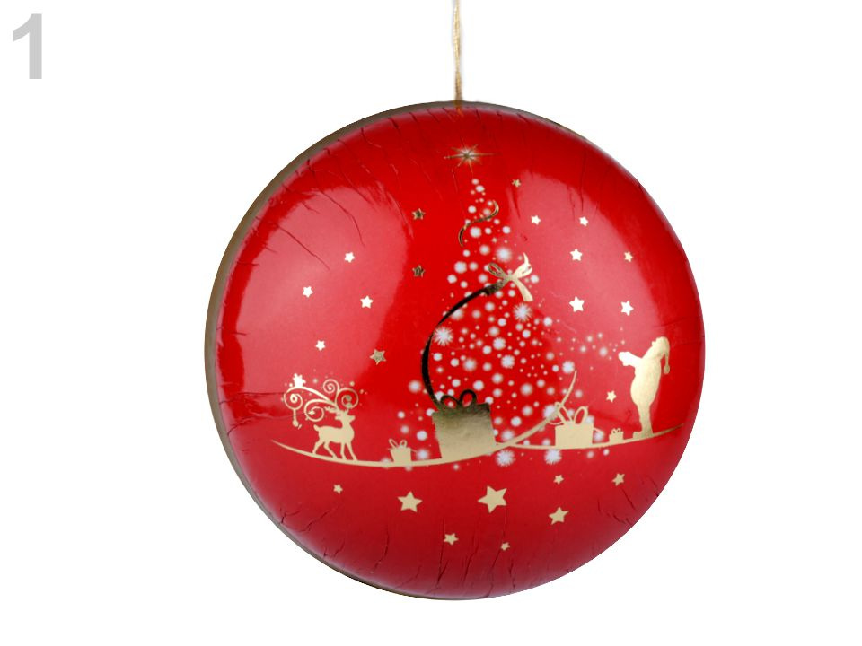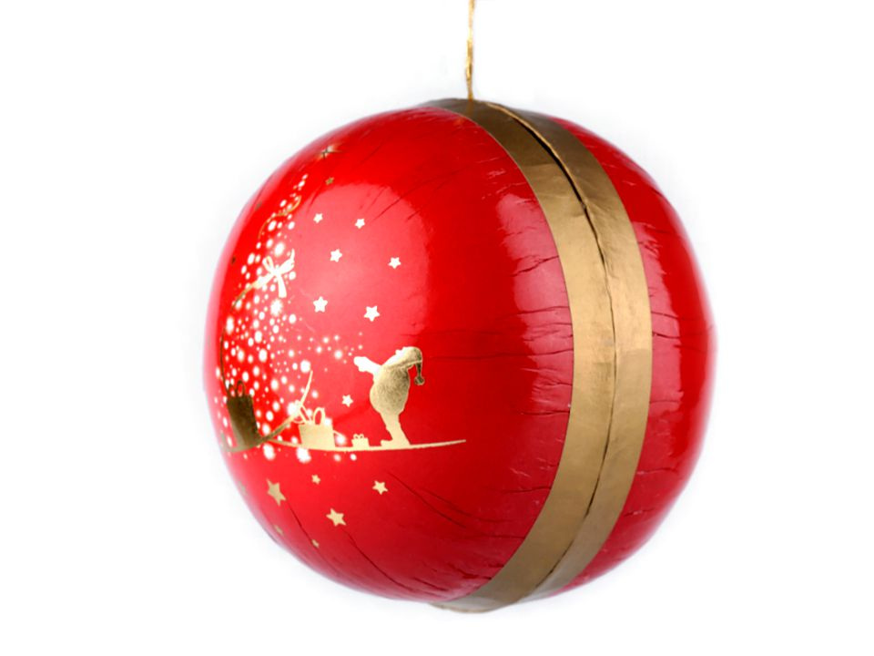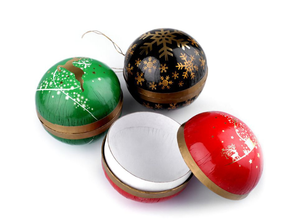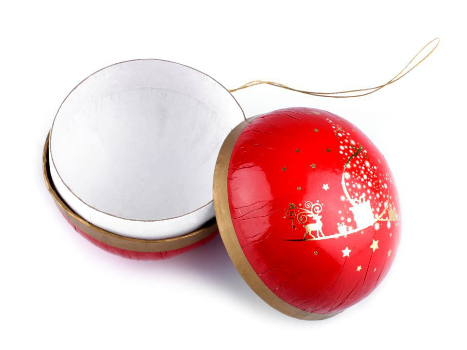 Originální dárková krabička s vánočním potiskem ve tvaru baňky je složená ze dvou rozevíracích půlek. Zlatý potisk se efektně leskne. Nahoře má poutko na zavěšení. Díky ní vtipně a pohodlně zabalíte dárek, který můžete ukrýt na stromečku, takže hledání dárku bude zábavnější.