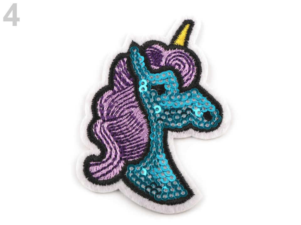 Flitrová nažehlovačka jednorožce potěší především dívky, ať už jsou to malé nebo větší slečny. Na první pohled je zaujme svým blýskavým třpytem. Je detailně zpracovaná, s flitry a plošnou výšivkou.