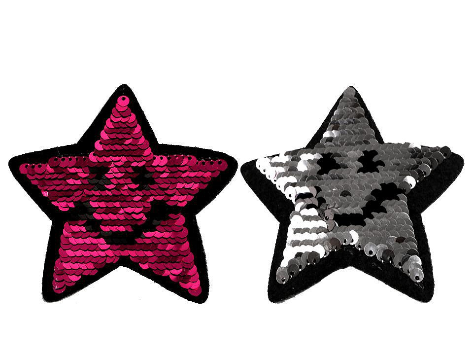 Nažehlovačky s měnícími flitry. Flitry jsou důmyslně našité, po jejich pohlazení proti směru se otočí a ukáží svou druhou stranu. Tím se změní barevný design nažehlovačky. Jsou oblíbené zejména u dětí a teenagerů, kteří si tak mění vzhled svého oblečení. Nažehlovačky mají kvalitní provedení, spodní stranu tvoří lepící vrstva, která po nažehlení pevně drží na látce.
