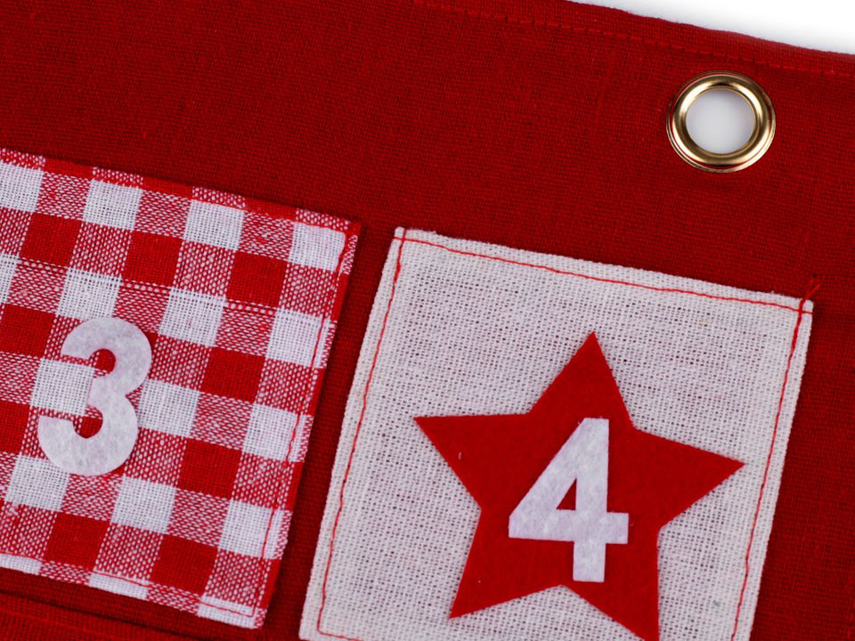 Patchworkový adventní kalendář s kapsičkami je stylovou dekorací nejen do dětských pokojů. Každá kapsa je označená číslem z plsti. Do kapsiček vložíte bonbóny, čokolády, drobné hračky apod. Děti budou mít ohromnou radost.